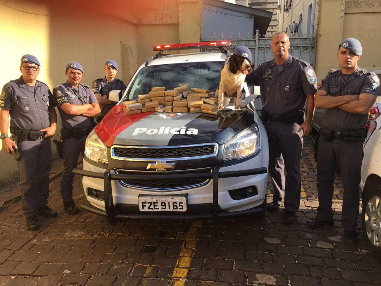 Segundo informações, após denúncia anônima,  equipes da Polícia Militar saíram em patrulhamento com  vistas ao  caminhão da cor branca, carroceria aberta, o qual estava plotado com nome de uma empresa de São Carlos.  Por volta das 14:30 os PMs avistaram  o referido veículo pela Rodovia  Geovana Aparecida Deliberto, o qual foi abordado. Ainda de acordo com a PM, o motorista J. S,de 38 anos,  aparentava nervoso.  O  cão Aquiles,  especialista em localização de drogas,  subiu na gabinete do caminhão e indicou em duas caixas de papelão onde foram localizados diversos tijolos de drogas.  A drogas e o motorista foram conduzidos à CPJ.  A autoridade de Polícia Civil determinou a lavratura do flagrante por tráfico de drogas e mandou o motorista para a cadeia.