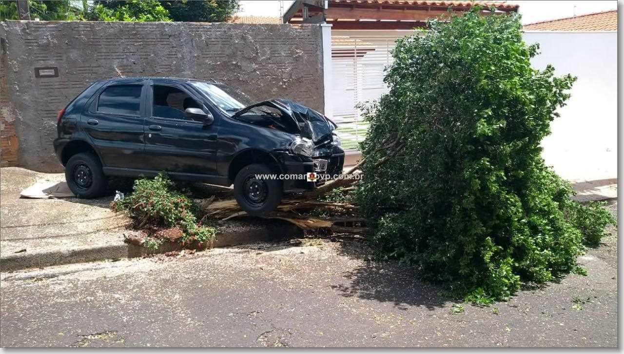 Um motorista para salvar um gatinho nesta tarde de quinta-feira, 20-02-2019, perdeu o controle da direção e colidiu o carro em uma árvore. O fato ocorreu no bairro Jd. Das Torres, São Carlos-SP.