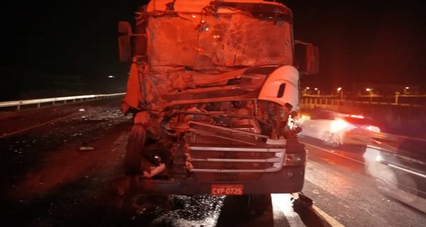 Um senhor de 68 anos colidiu seu caminhão na traseira de um caminhão caçamba nesta noite de quarta-feira, 01/06/2022, no km 240, região do Varjão, São Carlos-SP.