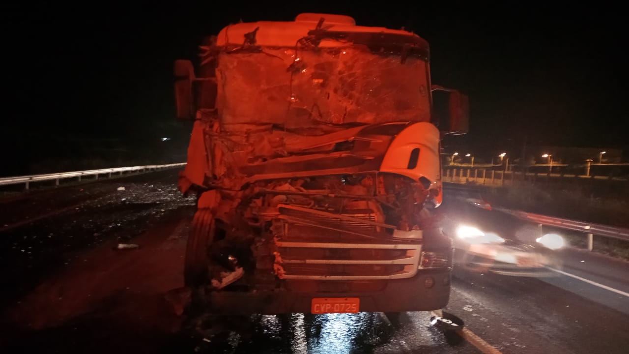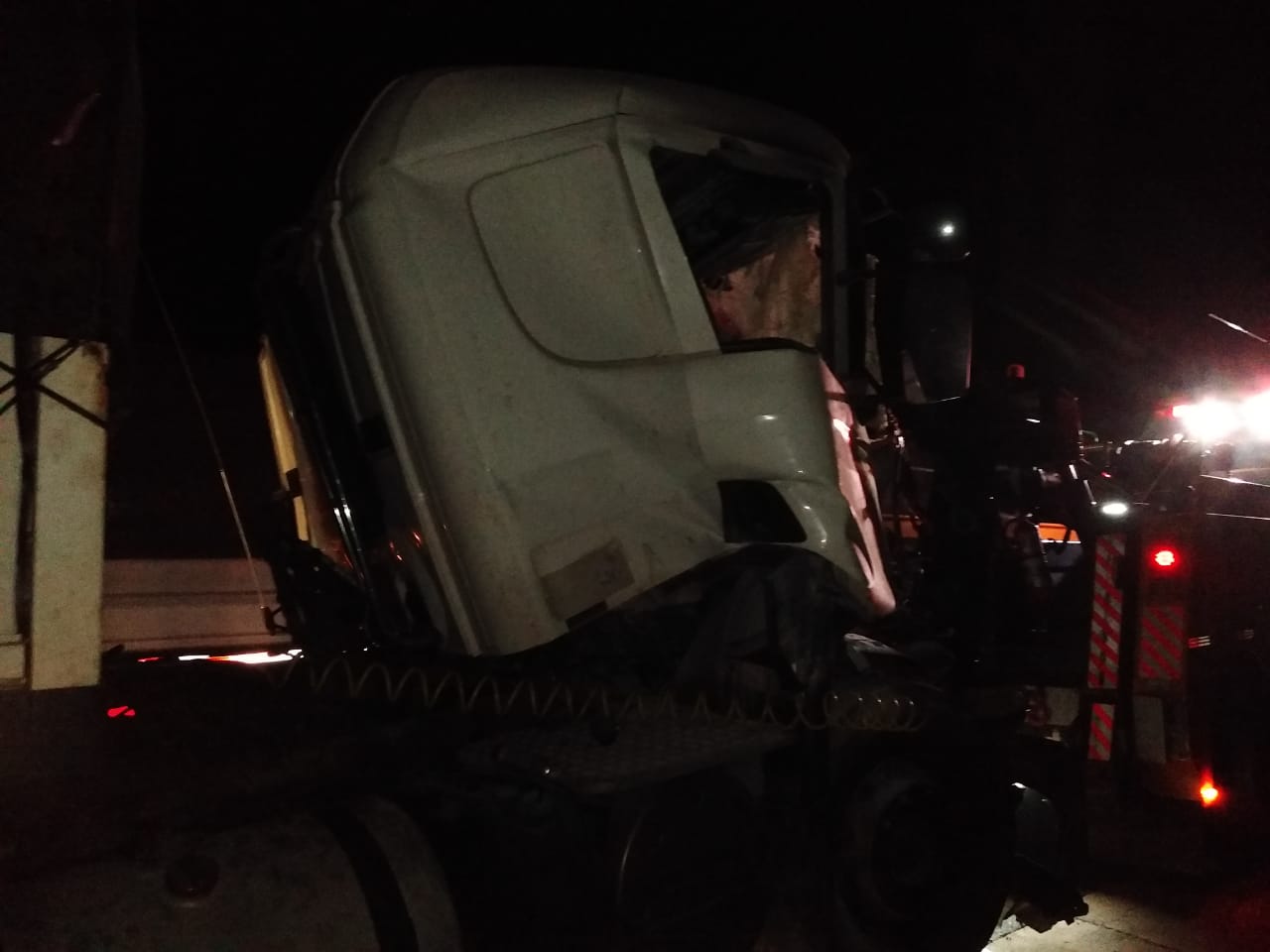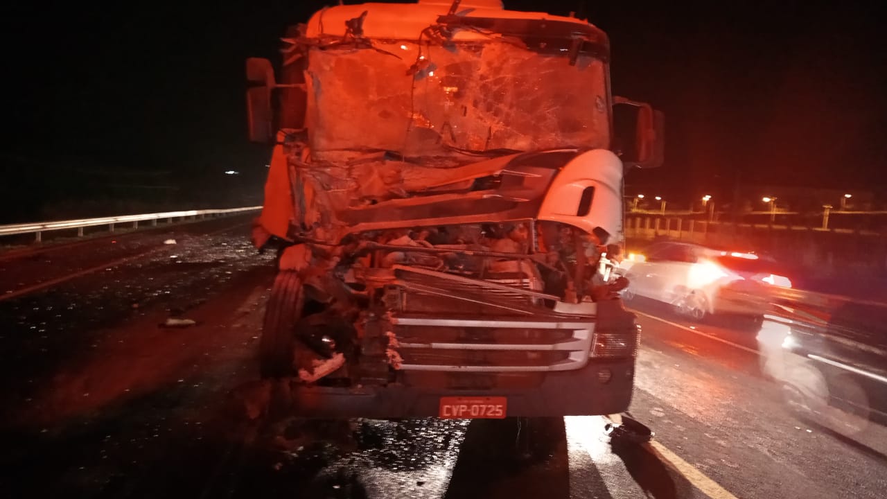 Um senhor de 68 anos colidiu seu caminhão na traseira de um caminhão caçamba nesta noite de quarta-feira, 01/06/2022, no km 240, região do Varjão, São Carlos-SP.