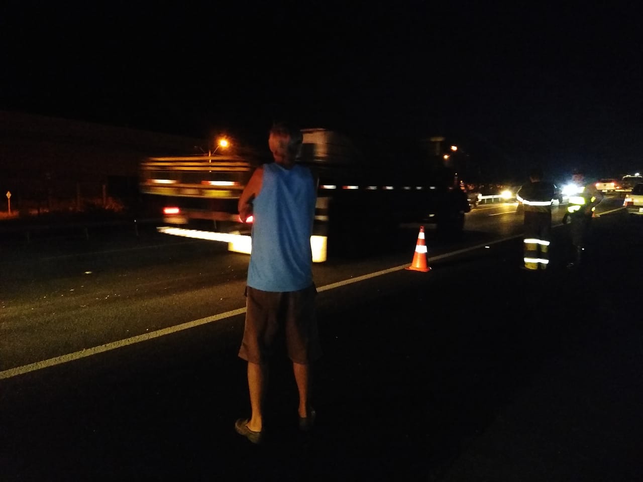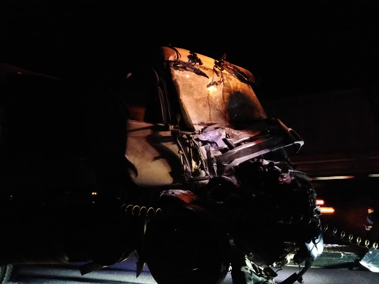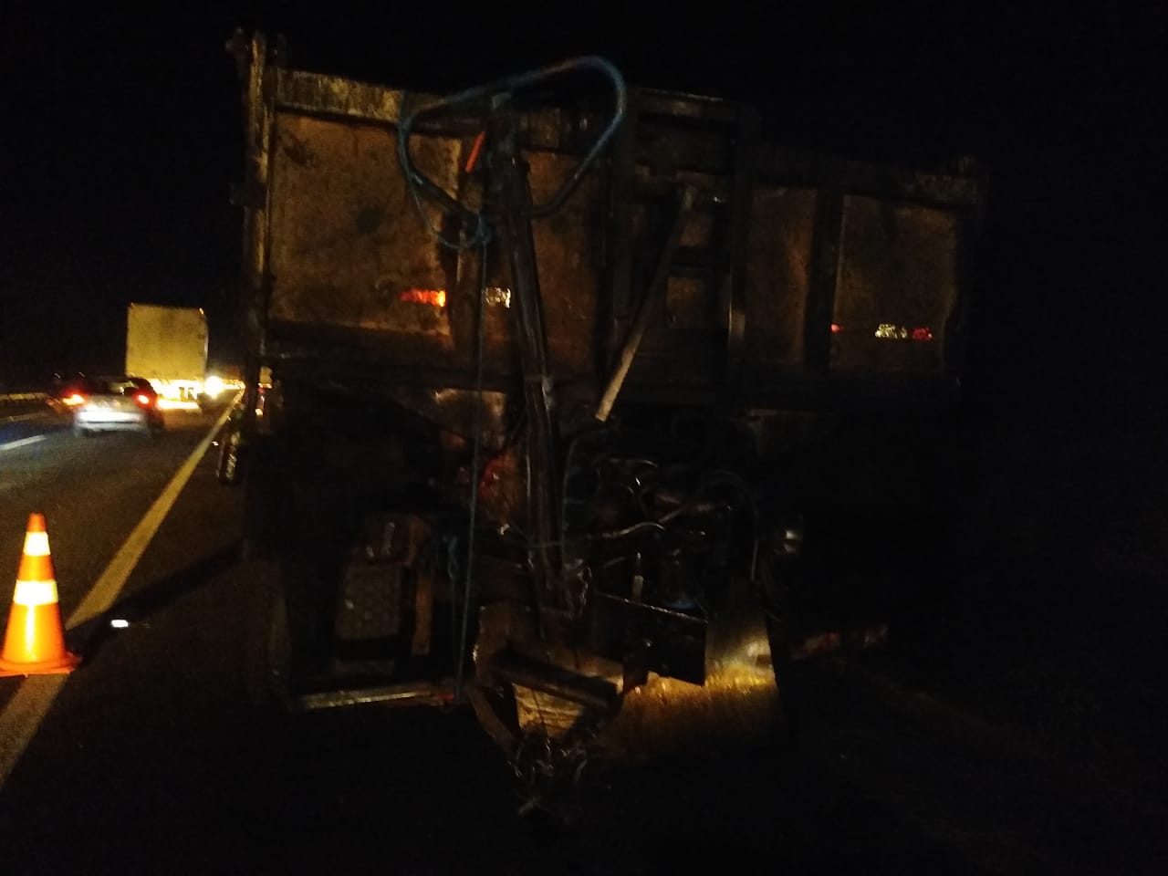 Um senhor de 68 anos colidiu seu caminhão na traseira de um caminhão caçamba nesta noite de quarta-feira, 01/06/2022, no km 240, região do Varjão, São Carlos-SP.