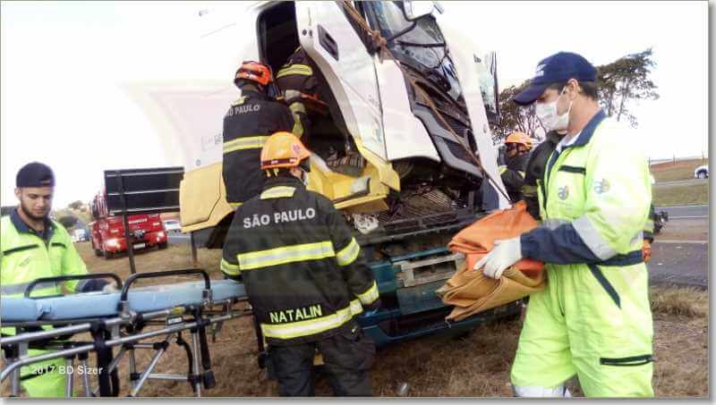 Após alguns minutos a equipe de resgate conseguiu retirar o motorista e o encaminhar à Santa Casa de São Carlos. Aparentemente ele sofreu fratura em uma das pernas. No local não foi possível informações o que aconteceu para causar a colisão. O motorista do outro caminhão nada sofreu. A Polícia Militar Rodoviária tomou todas as medidas cabíveis.