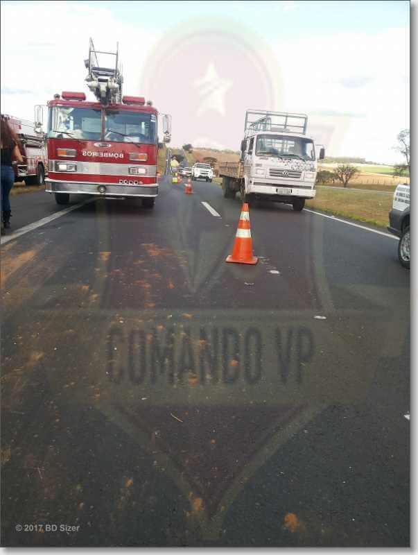 Uma colisão traseira entre dois caminhões ocorrida no km 242 da rodovia Washington Luís, defronte ao posto Nossa Senhora de Fátima, entre Ibaté/São Carlos-SP, deixou José Assunto Baldessini, de 66 anos, ferido.