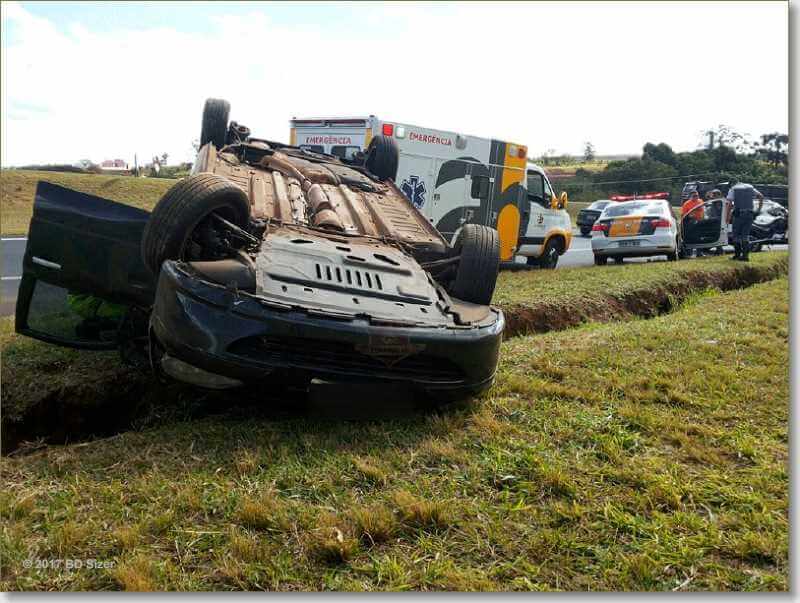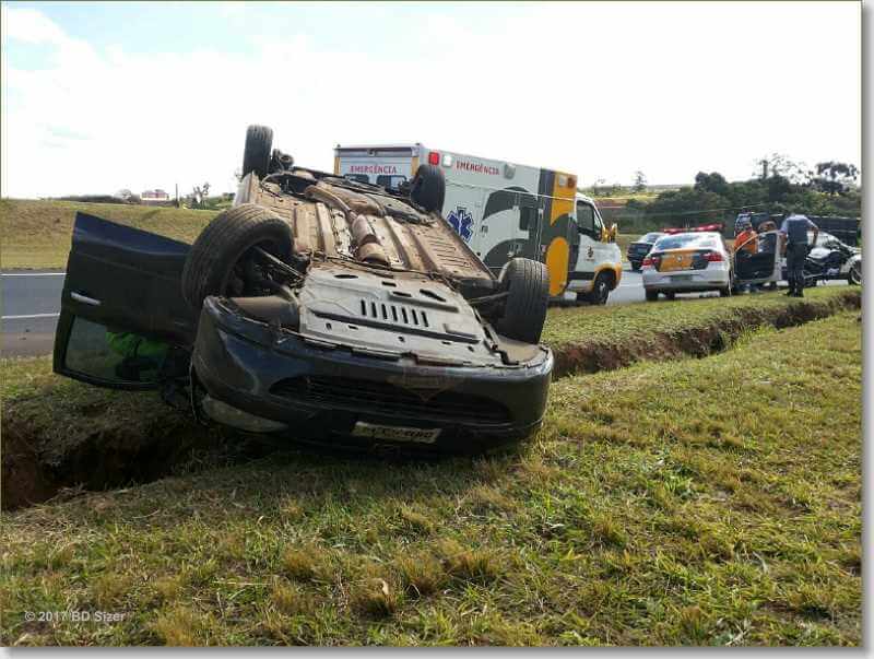 O veículo Peugeot, placas de São Carlos ficou com as rodas para o alto e o motorista deixou o local, segundo a polícia. O resgate do SAMU e Concessionária estiveram no local juntamente com a Polícia Militar Rodoviária e todas as medidas cabíveis foram tomadas. Uma seguradora compareceu ao local, mas como o motorista e cliente da mesma não se apresentou, a Polícia Militar Rodoviária não deixou levar o carro.