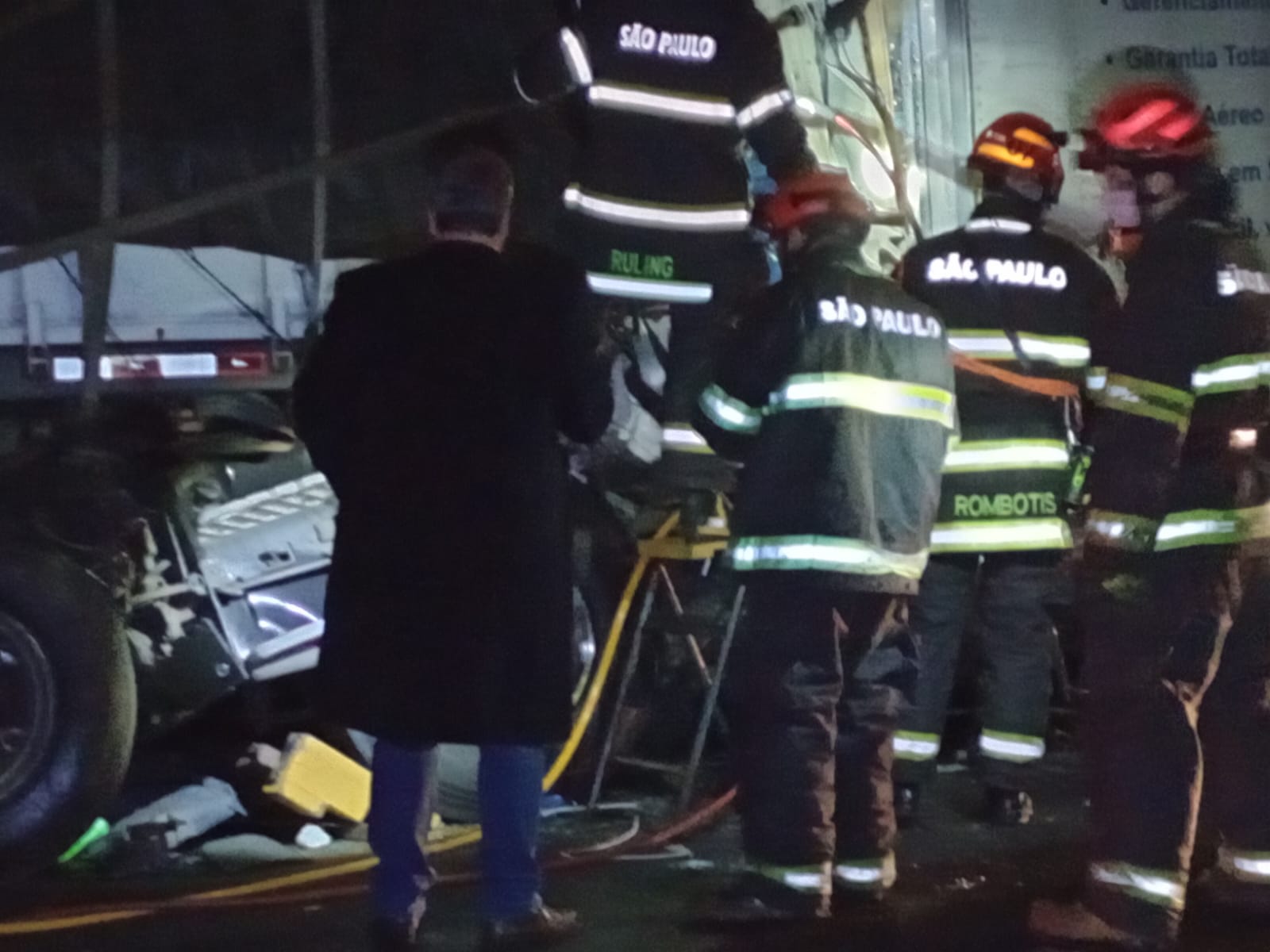 Um motorista morreu preso nas ferragens em um gravíssimo acidente no final da noite desta quinta-feira, 25/05/2023, no km 225 da Rodovia Washington Luís, região dos motéis, São Carlos-SP.