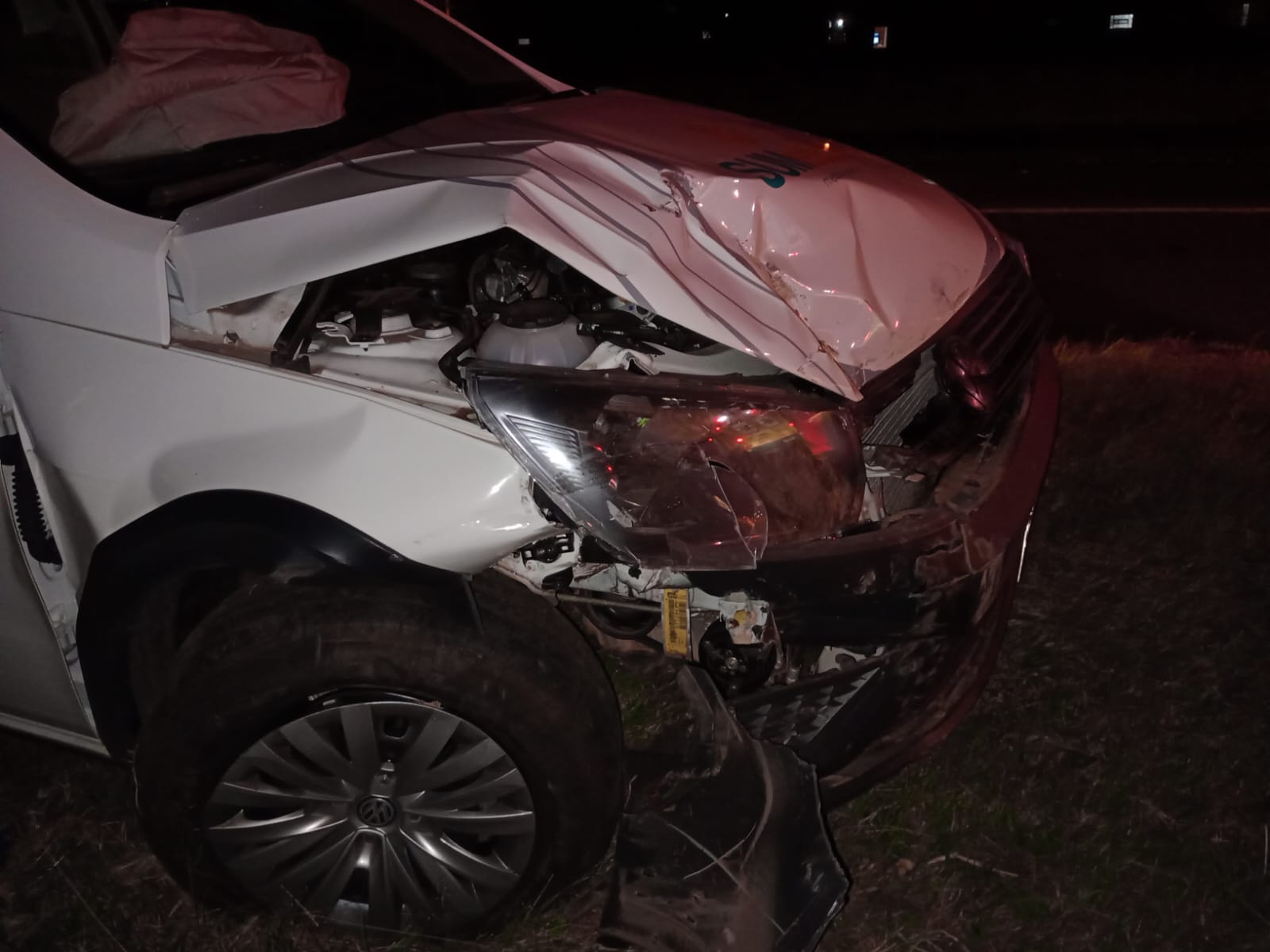 Segundo informações, um homem de 41 anos, conduzia um veículo Saveiro, placas de Curitiba-PR, no sentido norte, teria saído da pista, ido para o canteiro central, colidido com a divisória de cimento, voltando para pista de rolamento, e colidindo com um caminhão Mercedes Benz, o qual estava carregado de lenhas. O condutor do carro foi socorrido e encaminhado para a Santa Casa. O passageiro da Saveiro, nada sofreu. A Polícia Militar Rodoviária esteve no local e tomou as medidas cabíveis. O passageiro da Saveiro, disse que o motorista teria sofrido uma convulsão ao volante. Aparentemente o estado de saúde da vítima, é leve.