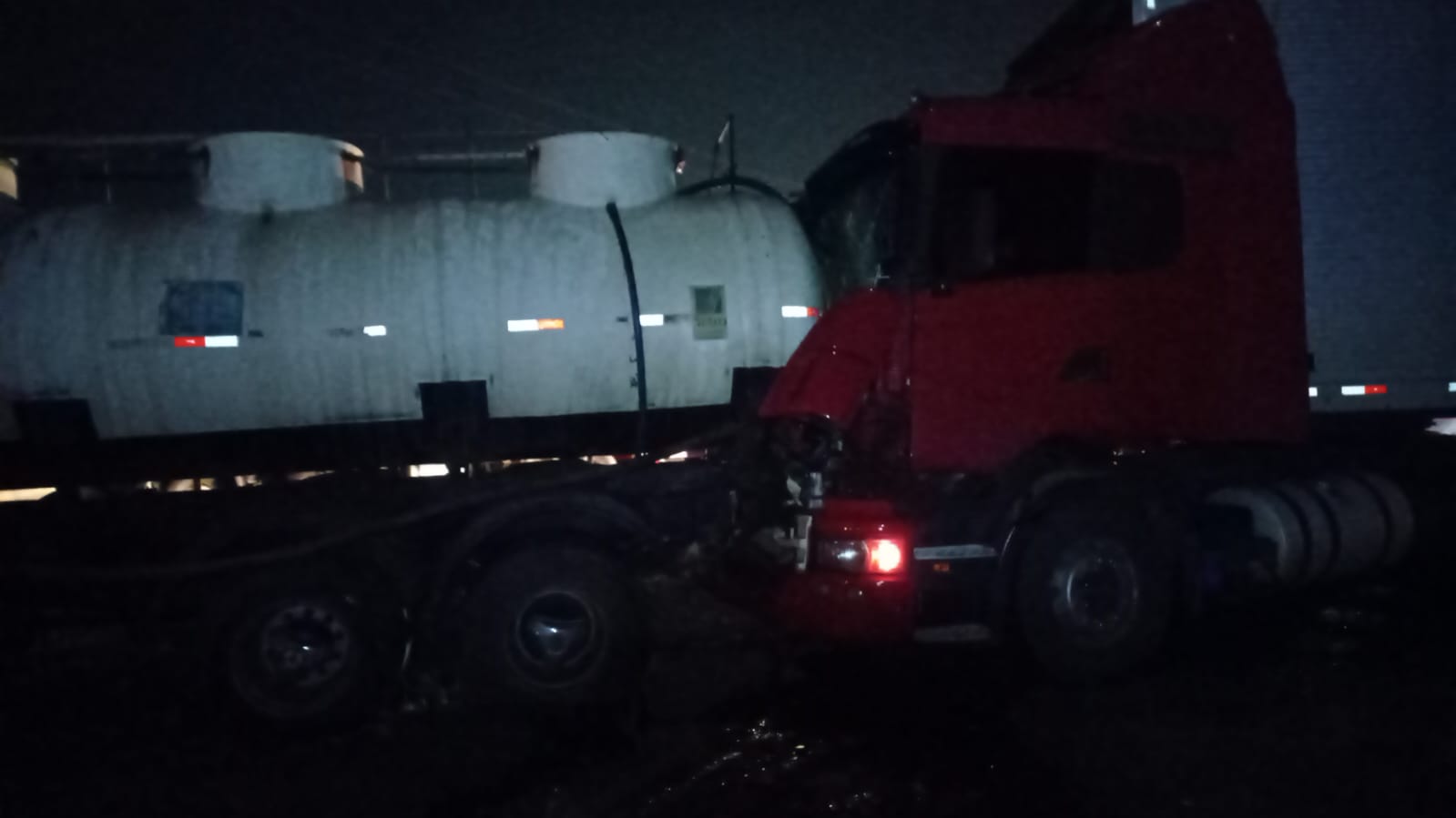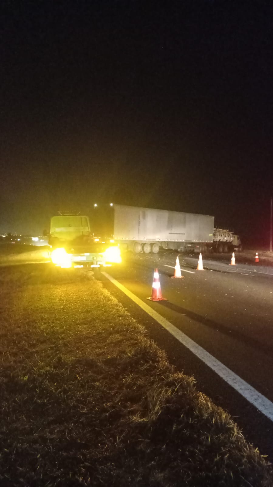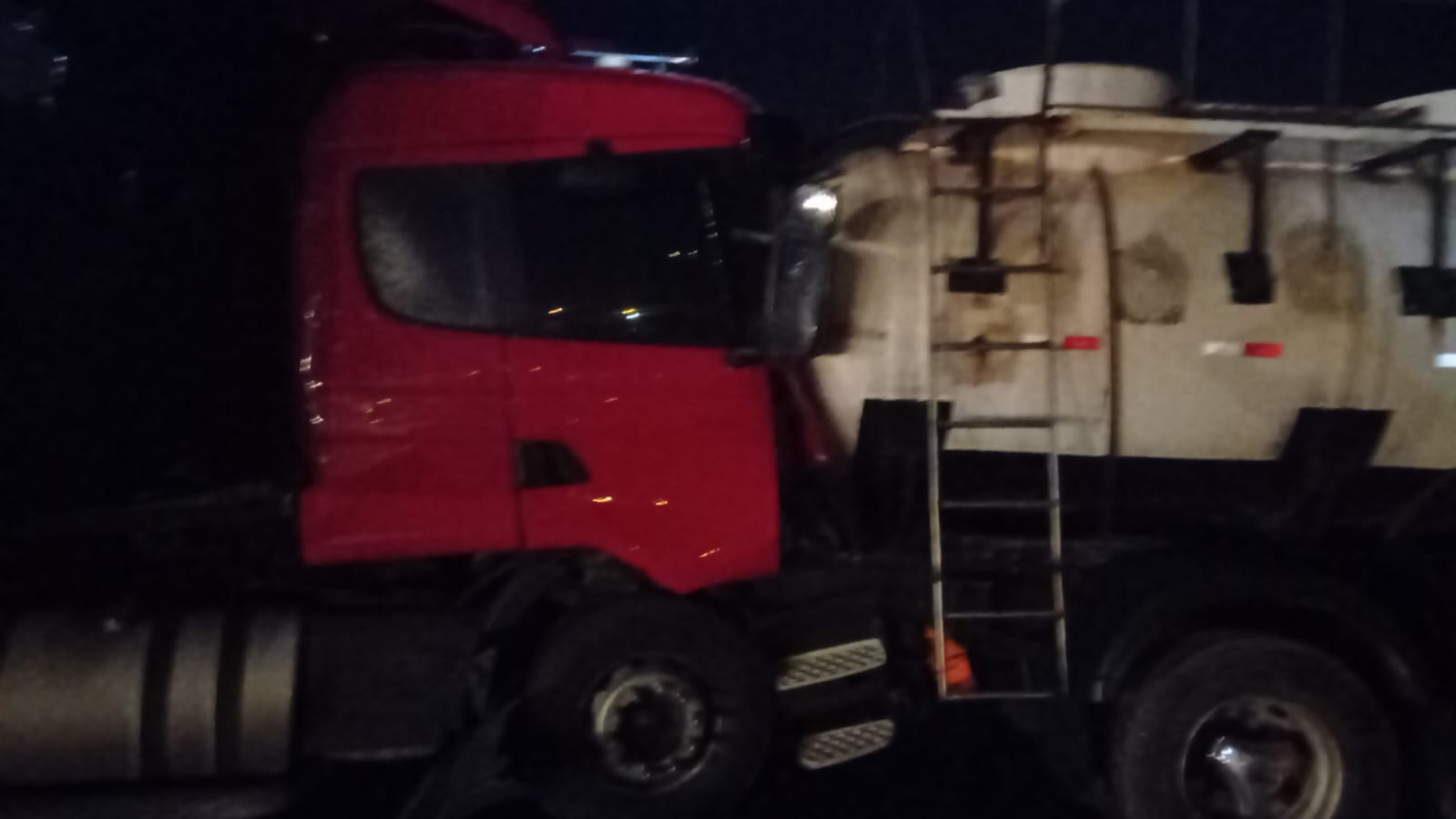 Um homem fraturou o nariz em um acidente de envolvendo dois caminhões nesta noite de segunda-feira, 17 de junho de 2024, no km 246 da Rodovia Washington, entre Ibaté/São Carlos-SP.