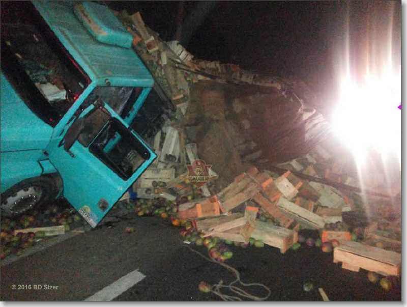 Benedito Padilha Alves, de 65 anos, foi socorrido pelo SAMU nesta noite de quarta-feira, 07-12-2016, após tombar seu caminhão próximo a base da Polícia Militar Rodoviária de São Carlos-SP. O acidente aconteceu por volta das 20:30 no sentido sul.