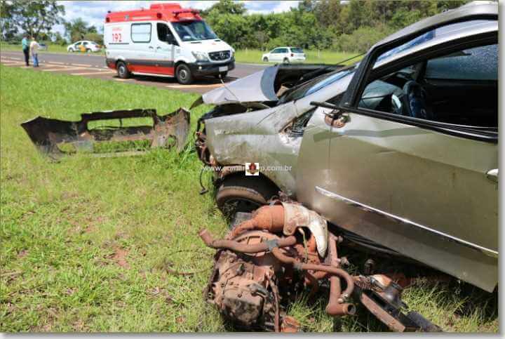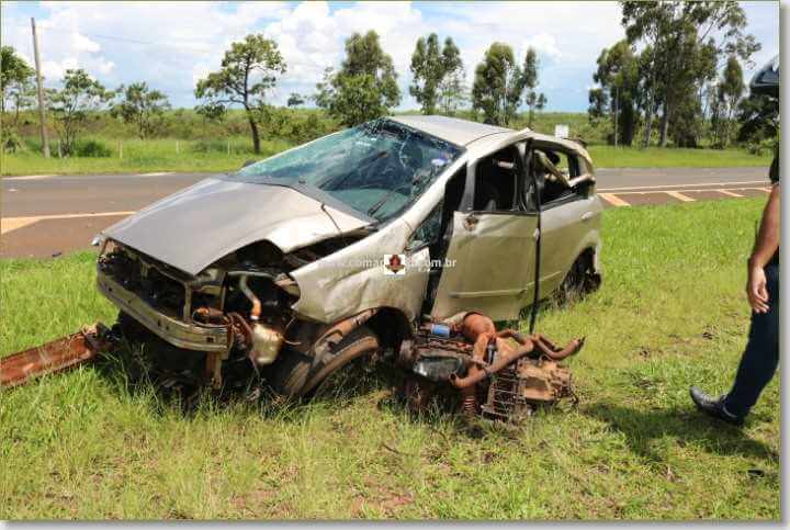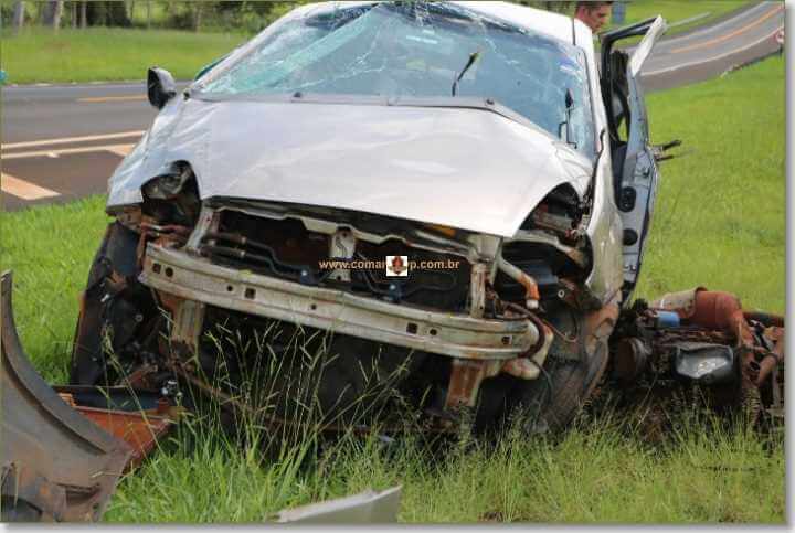 O Punto, placas de Uberaba-MG, ficou completamente destruído e seu motor foi arrancado.
