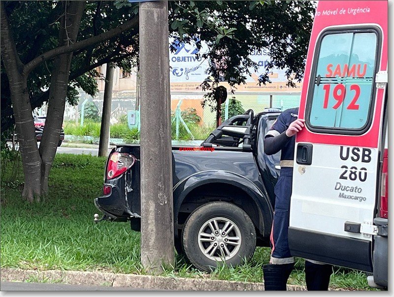 Uma mulher foi socorrida pelo SAMU nesta tarde de quinta-feira, 5 de dezembro de 2024, após colidir sua caminhonete na Avenida Comendador Alfredo Maffei, região do bairro Castelo Branco, São Carlos-SP.