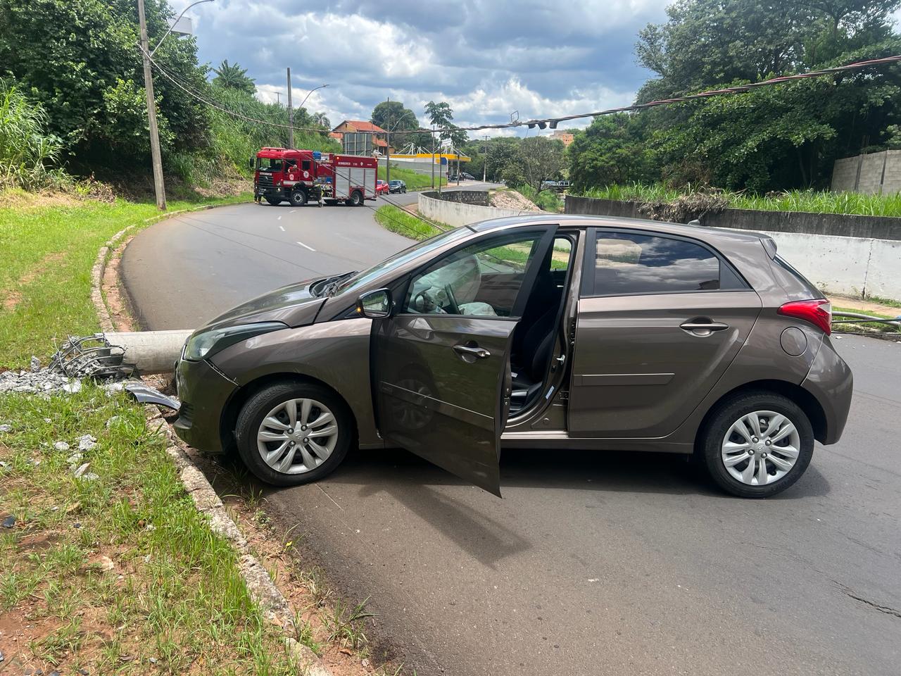 Uma mulher de 25 anos ficou levemente ferida ao colidir seu carro em um poste no início da tarde deste sábado, 27 de janeiro de 2024, na Avenida José Pereira Lopes, região “da Curva do Joinha”, São Carlos-SP.