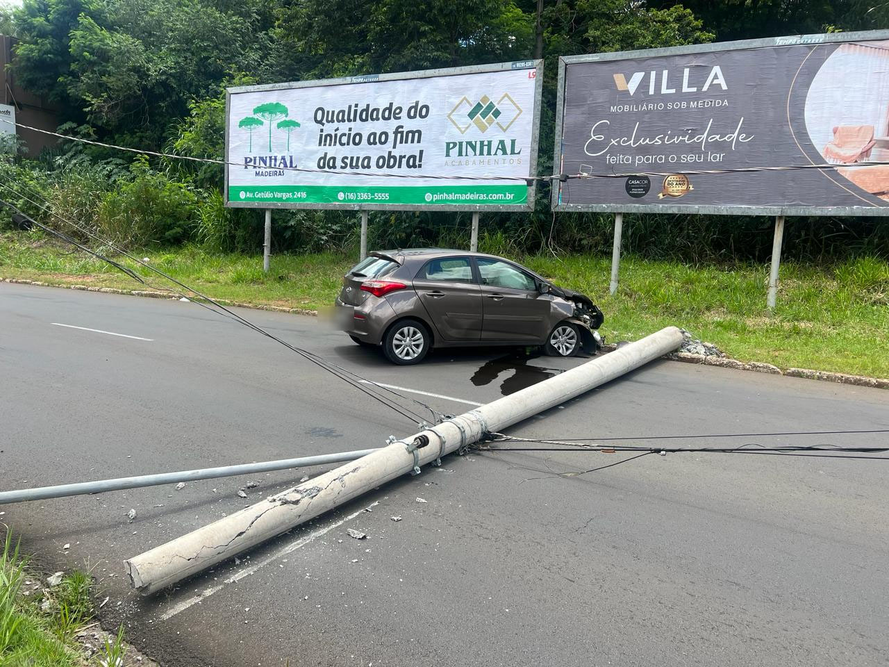 Segundo informações, a mulher transitava com seu HB20, sentido shopping /USP, por motivos desconhecidos, perdeu o controle da direção e atingiu um poste. Com a batida, o poste acabou caindo no meio da via. A mulher sofreu ferimentos leves e foi socorrida pelo Corpo de Bombeiros e encaminhada para a Santa Casa. A Polícia Militar esteve no local e acionou a CPFL para trocar o poste.