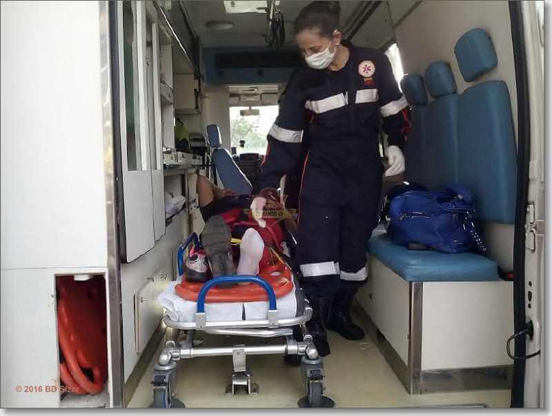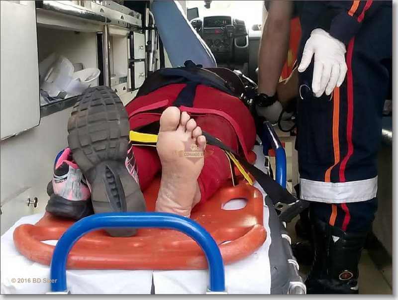 Ela disse que foi arrumar uma sacola que carregava e acabou ocorrendo o acidente. Com ferimentos leves a vítima foi encaminhada à Santa Casa.