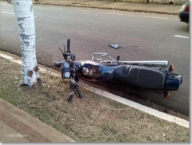 Dona Maria Nascimento, de 52 anos, ficou levemente ferida ao perder o controle de sua moto e colidir em um coqueiro nesta tarde de terça-feira, 20-09, na Avenida Comendador Alfredo Maffei.