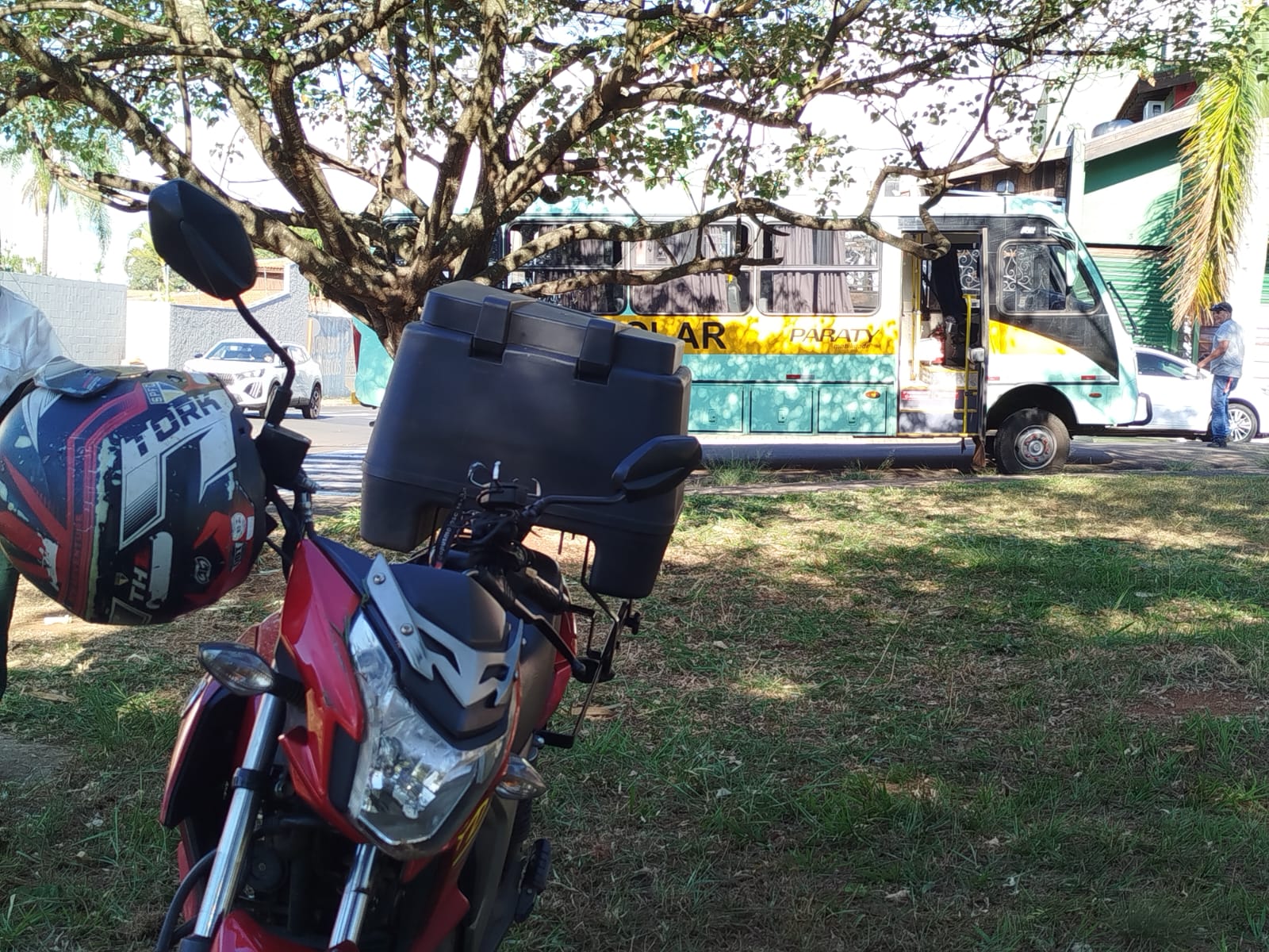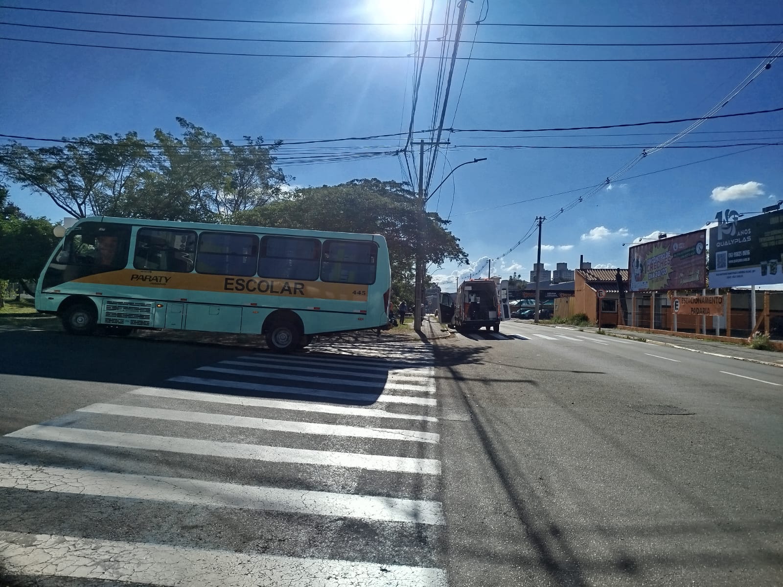 Uma mulher de 38 anos ficou levemente ferida ao colidir sua moto na lateral de um ônibus da Paraty nesta tarde de na Avenida Miguel Petroni, São Carlos-SP.