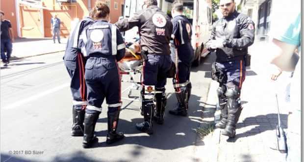 Uma mulher de 25 anos sofreu lesões no corpo nesta manhã de quinta-feira, 5 de outubro de 2017, ao ser atropelada por uma moto na rua Dona Alexandrina, região do Terminal Rodoviário, São Carlos-SP.