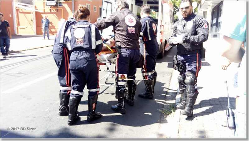 O marido de Cleide, disse que parou o carro do outro lado da rua para a mesma descer. Ele foi tentar atravessar a rua fora da faixa de pedestre, carros pararam para a mesma atravessar, mas uma moto a atropelou. Ela foi socorrida pelo SAMU e encaminhada ao médico. Aparentemente sem gravidade.