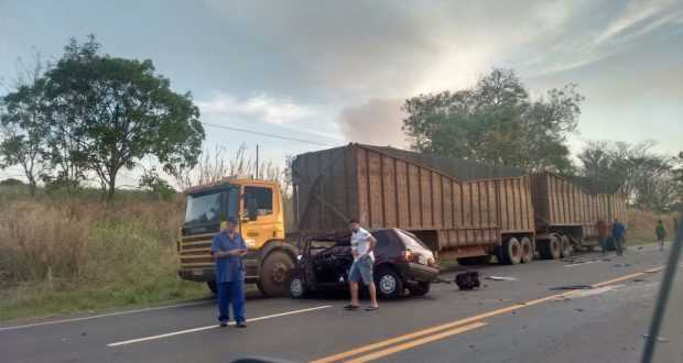 Segundo o tenente Pilon da Polícia Rodoviária, o caminhão carregado com cana estava devagar, o Uno com a família colidiu na traseira, rodopiou e atingiu a lateral do mesmo caminhão. Uma bebê idade não informada e uma mulher morreram no local. As informações são da Polícia Rodoviária.