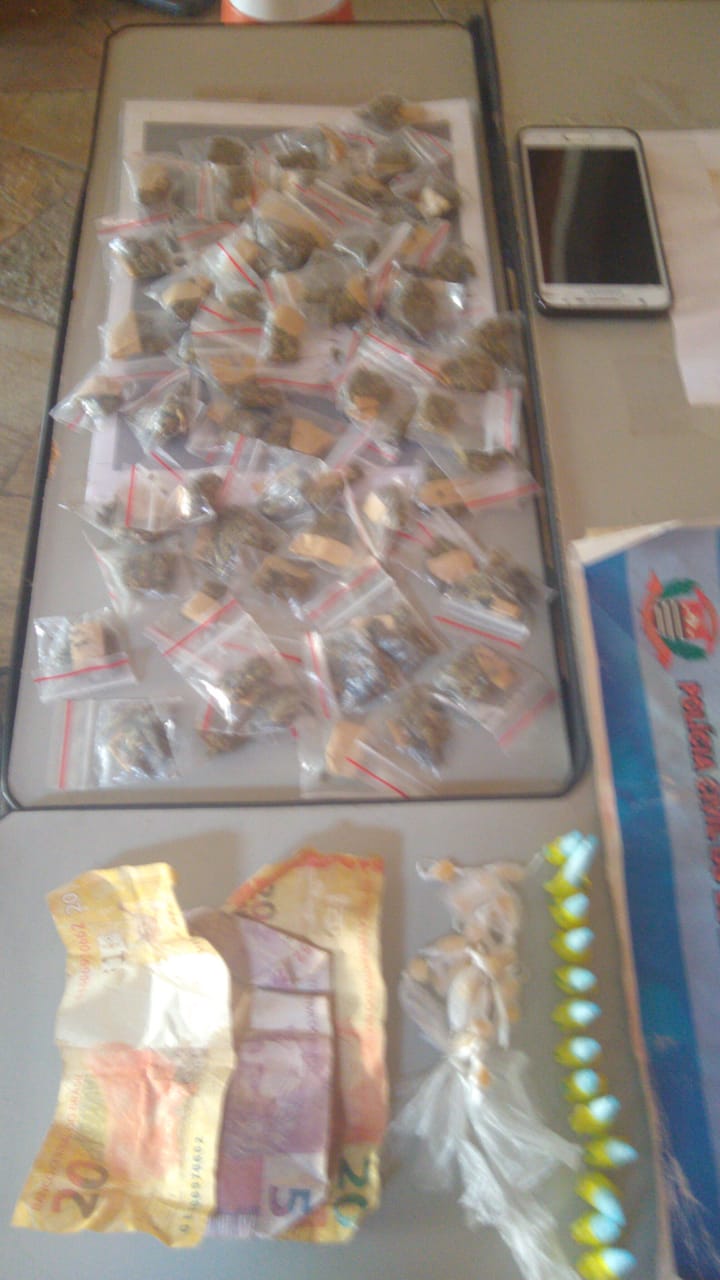 Segundo informações, a equipe estava em patrulhamento pelo referido bairro, quando se deparou com a suspeita. Ela teria tentado fugir, mas foi abordada e na sacola localizados 65 porção de maconha, 13 pinos de cocaína, 22 pedras de crack e R$ 45,00.