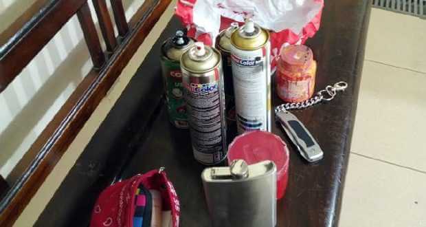 A mulher foi encaminhada ao Plantão Policial e liberada. Com a mesma foram localizados vários frascos de tinta e um canivete.