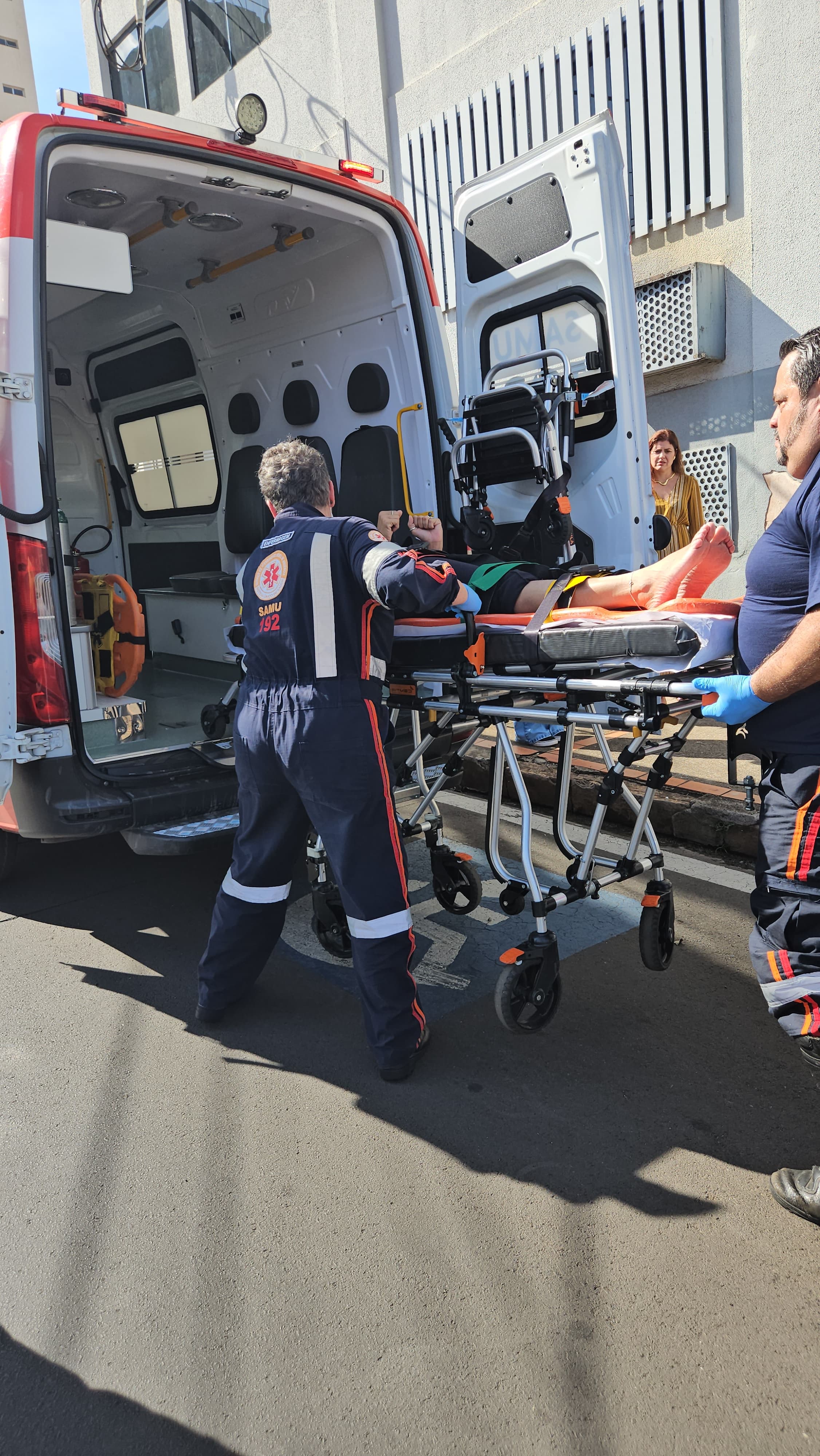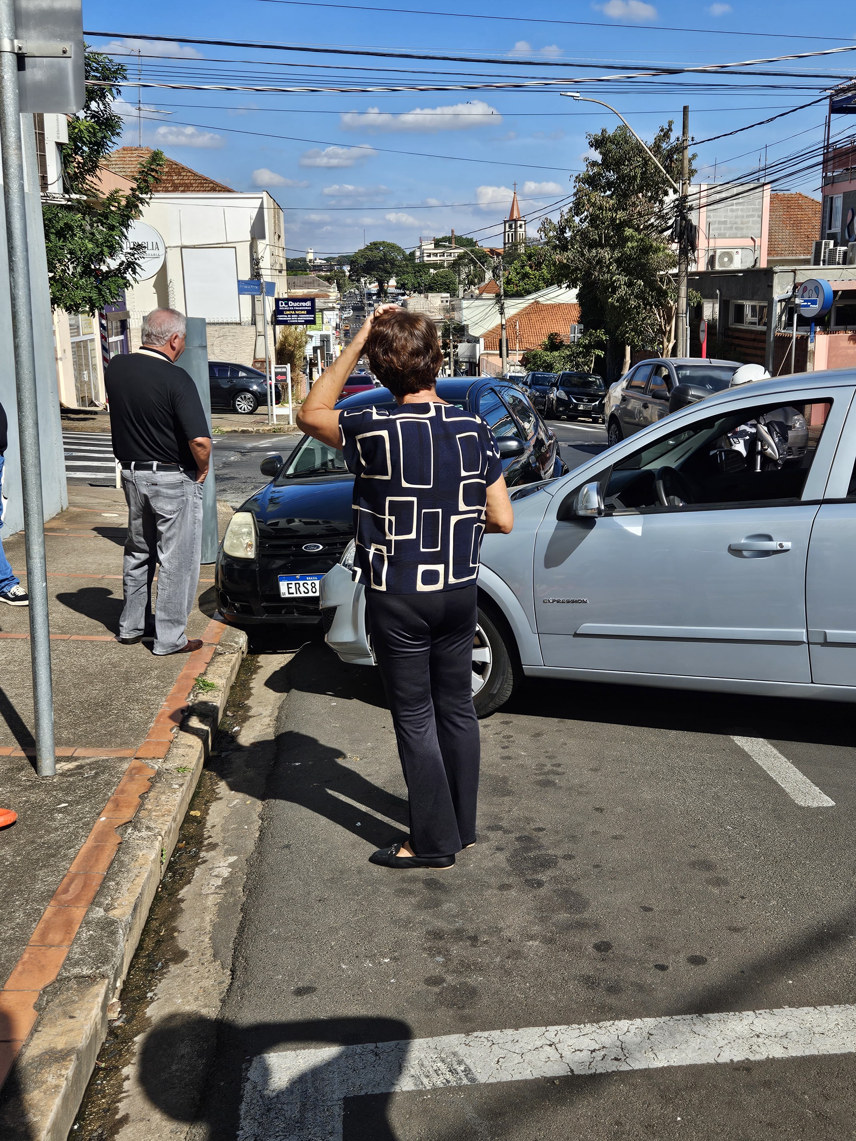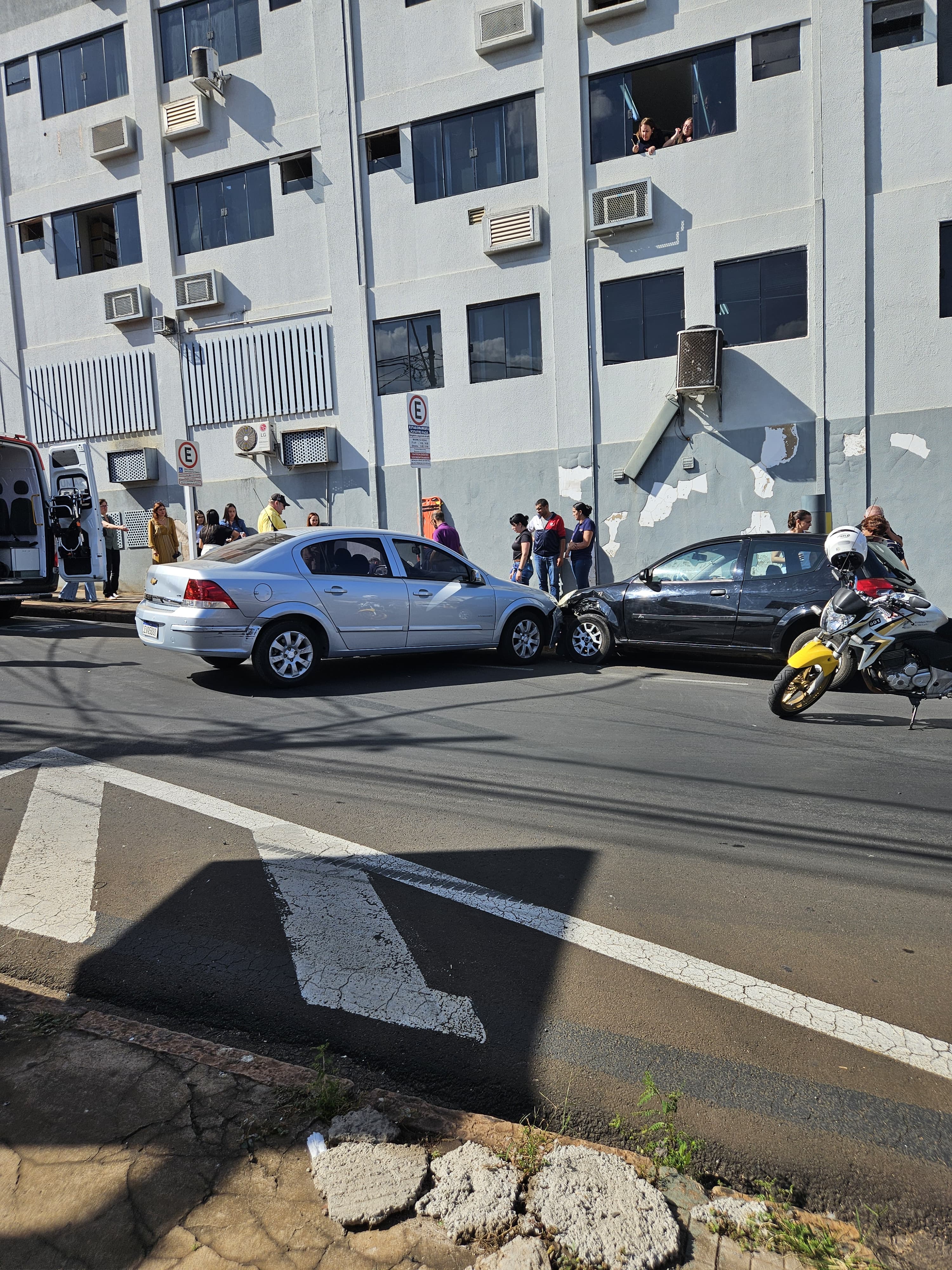 Três veículos ficaram danificados e uma mulher de 44 anos ficou ferida nesta tarde de segunda-feira, 26 de maio de 2025, no cruzamento da Rua Conde do Pinhal, com a Rua Nove de Julho, Centro de São Carlos-SP.