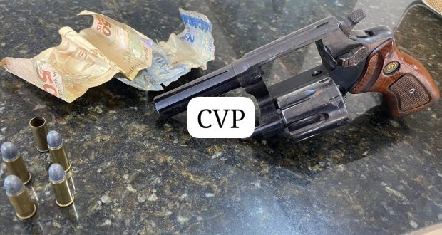 Viaturas foram para o local e uma equipe conseguiu abordar a mulher. Na bolsa dela foi localizado o revólver calibre 32, com 4 munições intactas e uma deflagrada. T.O.P.P, a qual já tem passagem por tráfico de drogas e estava com mandado de prisão, foi encaminhada para a Central de Polícia Judiciária, onde disse que havia pegado a arma emprestada. O delegado, Dr. Maurício Antônio Dotta e Silva autuou a detida em flagrante e recolheu ao Centro de Triagem de São Carlos.