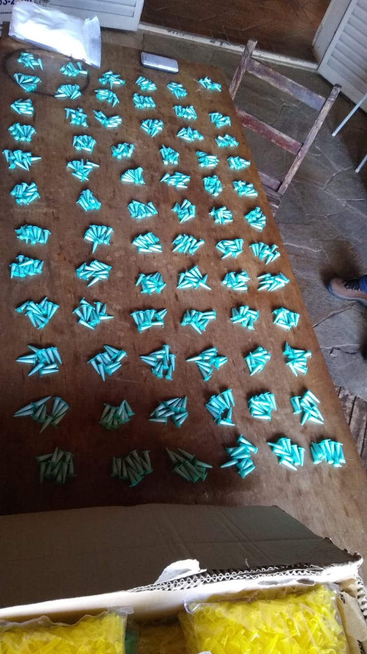 Foram apreendidos 718 eppendorfs de cocaina cheios, 912 gramas pó branco, 7.100 eppendorf vazios. J.A.P.M, de 44 anos, foi encaminhada à DISE ( Delegacia de Investigações Sobre Entorpecente), onde foi presa por tráfico de drogas e recolhida ao Centro de Triagem.