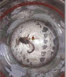 Uma dona de casa localizou na manhã de ontem, 30-11-2018, um escorpião dentro de seu banheiro no bairro São Carlos VIII, São Carlos-SP.
