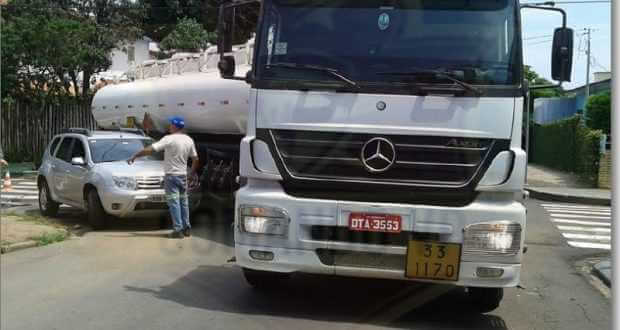 O motorista do caminhão de 55 anos disse que estava pela rua Orlando Damiano e atrás de seu caminhão estava um carro conduzido por uma mulher. Quando o motorista do caminhão carregado de combustíveis foi fazer a conversão, a condutora do carro também foi fazer a conversão pela direita e acabou sendo atingida pelo caminhão. Apesar do susto ninguém ficou ferido e a PM esteve no local.