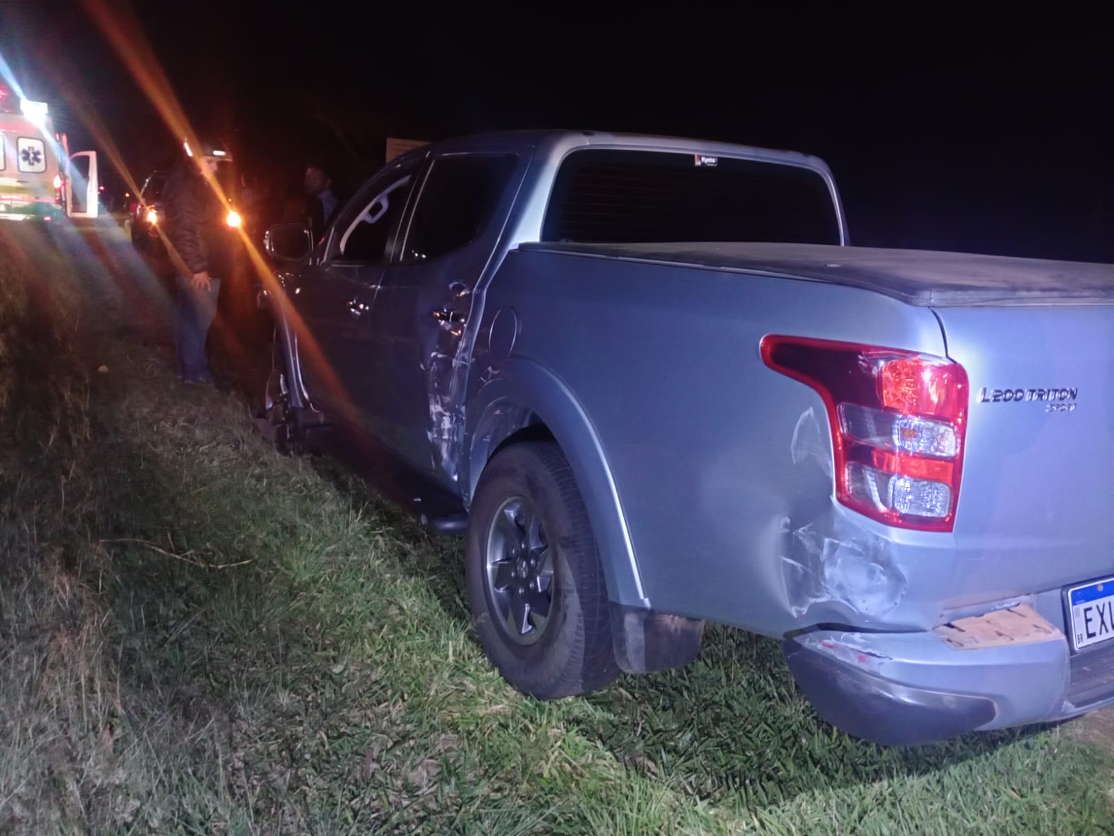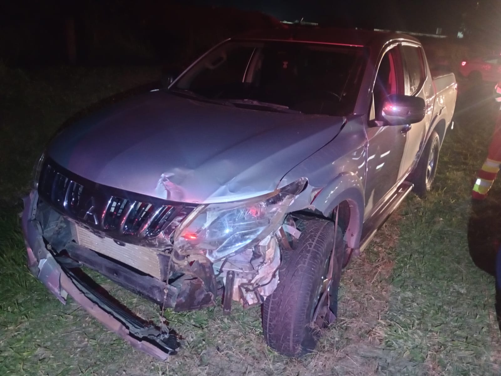 De acordo com informações, o masculino , G.J.B, de 38 anos, estava transitando com sua caminhonete Triton, e tinha como passageiro J.C, 53 , quando um caminhão conduzido por F.D, 44, saiu da faixa da esquerda, adentrou na direita e atingiu a caminhonete. Com a batida, a caminhonete rodopiou e colidiu na defesa metálica. Um veículo Fiat Strada conduzido por uma mulher, que tinha como passageiro o filho de 17 anos, não conseguiu parar e colidiu na traseira da caminhonete. O Corpo de Bombeiros e a concessionária que administra a rodovia estiveram no local, mas as vítimas não quiseram atendimento. Todos os condutores dos veículos fizeram o teste do barômetro e o da mulher deu positivo( o, 50), segundo a Polícia Militar Rodoviária. A ocorrência foi apresentada na Central de Polícia Judiciária, onde o delegado tomou as medidas cabíveis.