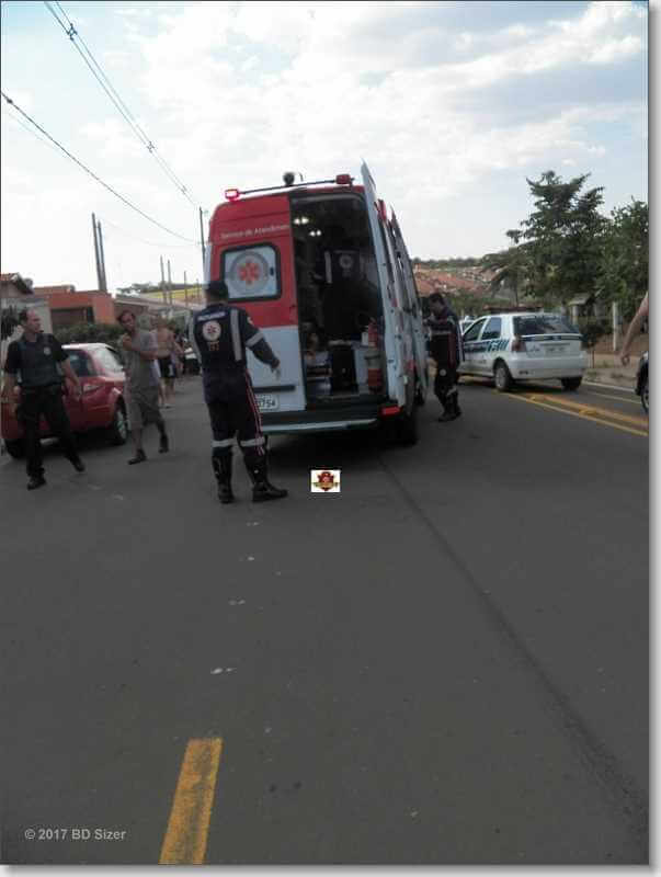 Um casal ficou  ferido nesta tarde deste sábado, 14 de outubro de 2017, na rua Principal do bairro Av. Nicolau Chicrala, bairro Jd. Araucária, São Carlos-SP.