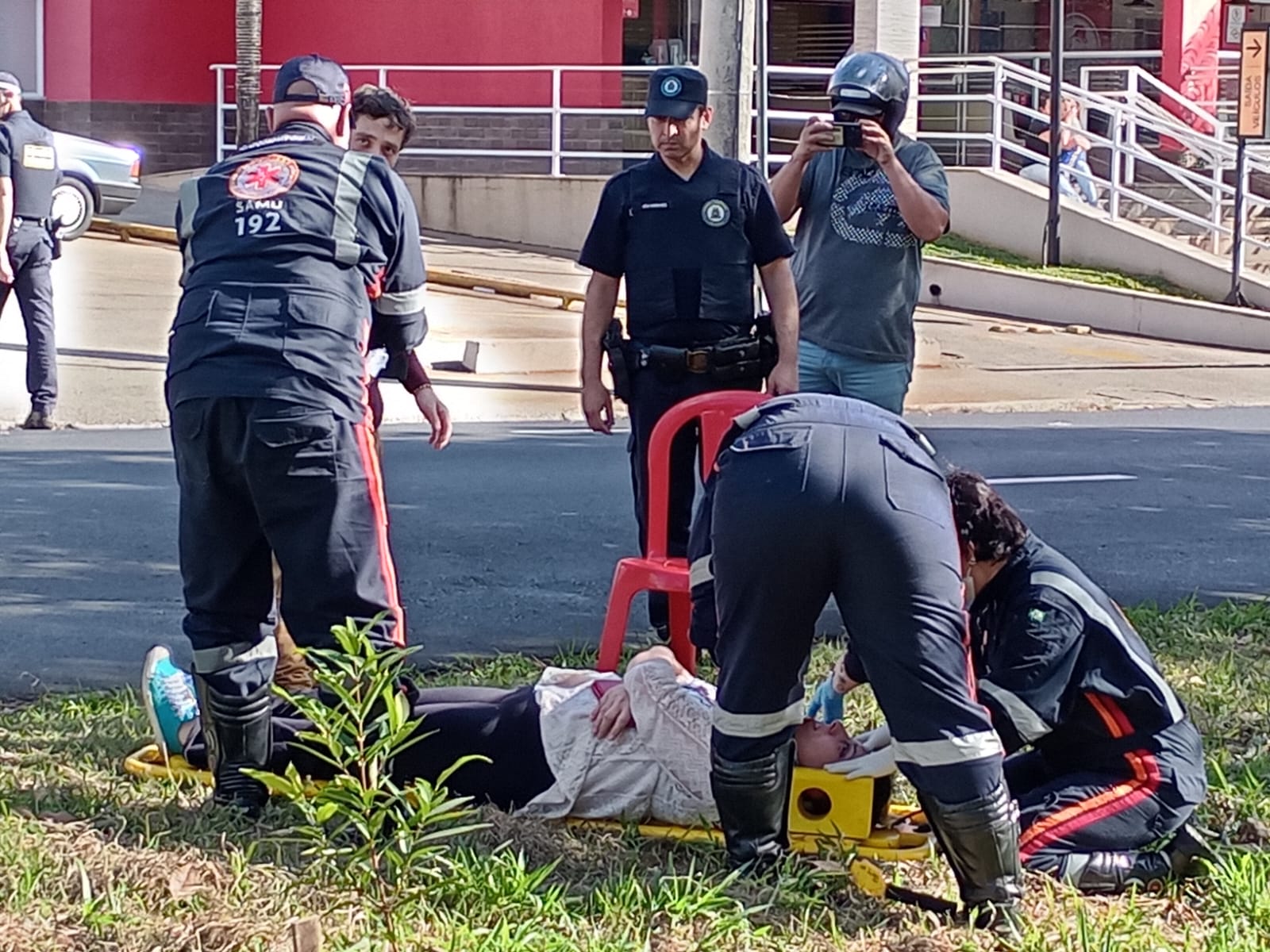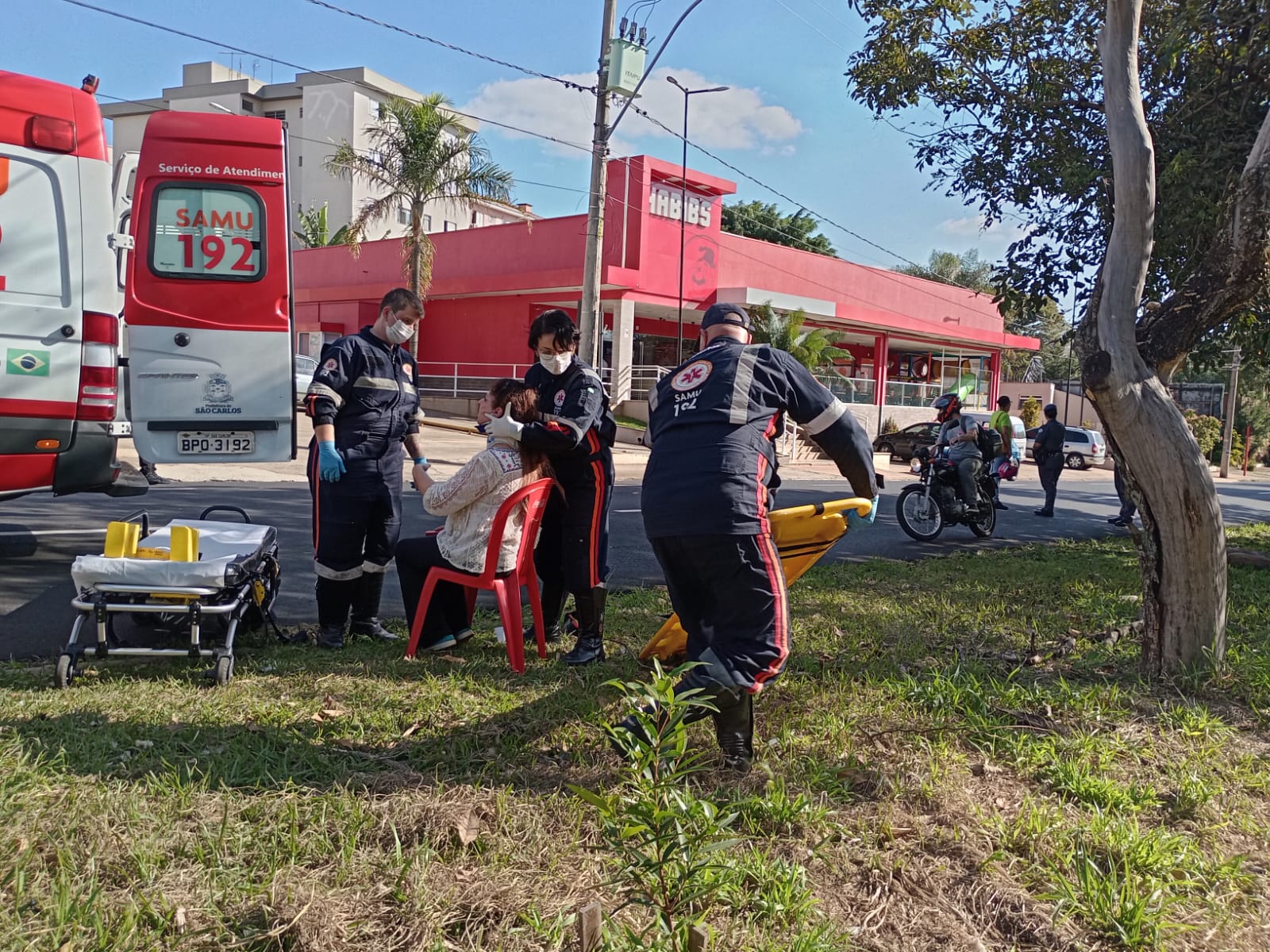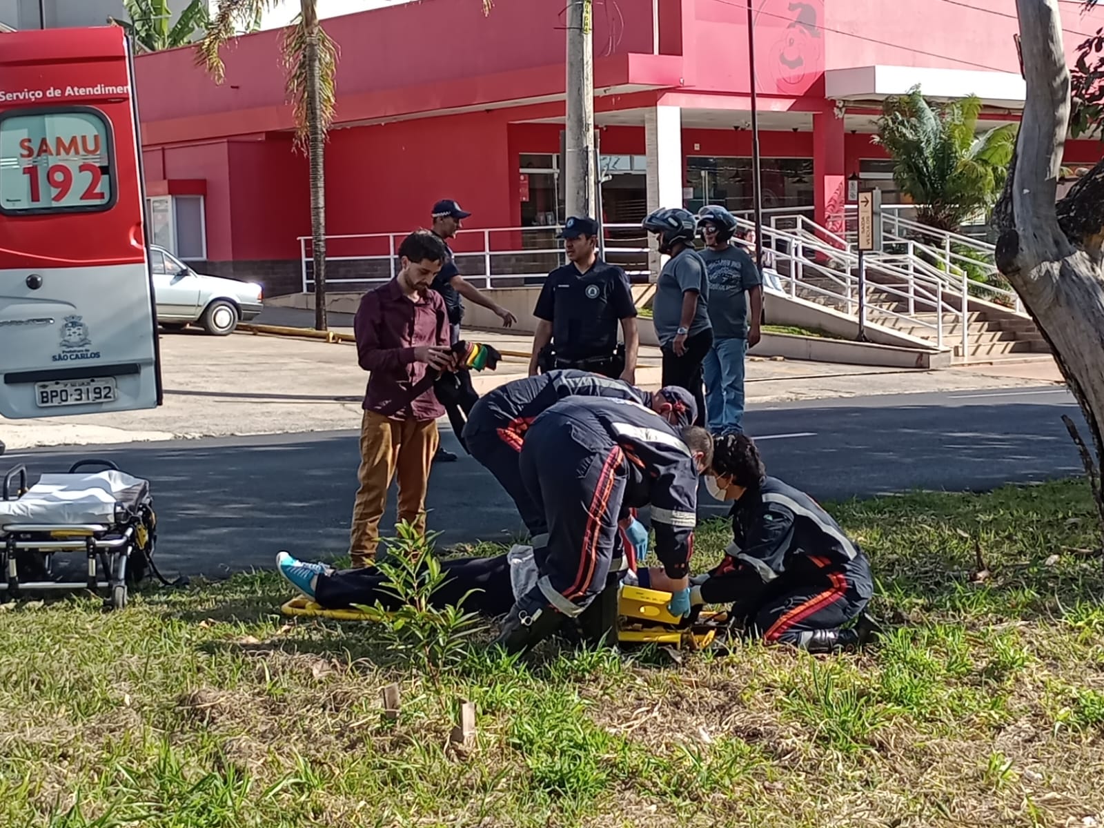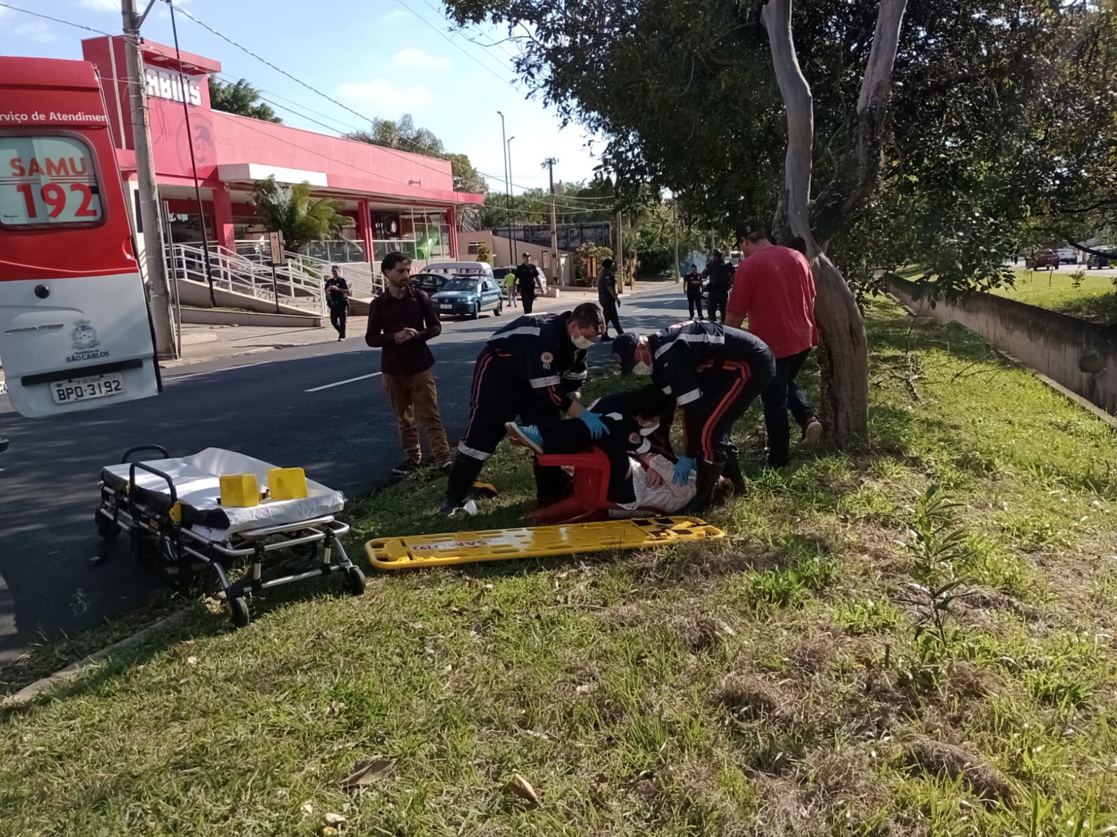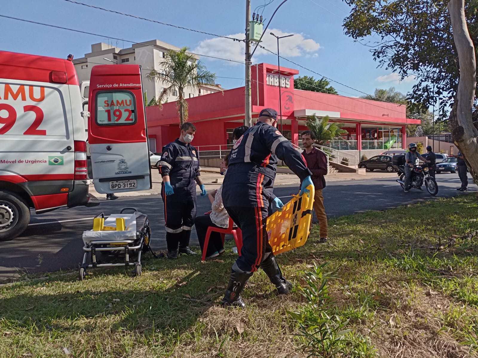 Uma mulher de 53 anos ficou ferida em um acidente de trânsito ocorrido nesta tarde de sexta-feira, 30 de junho de 2023, na Avenida Trabalhador São-carlense, região do Campus Um da USP, São Carlos-SP.
