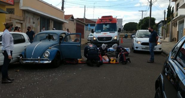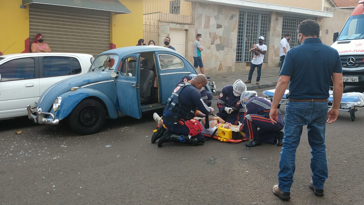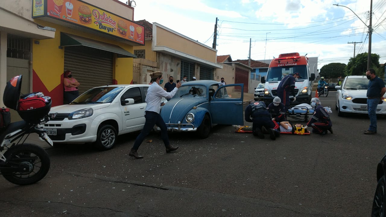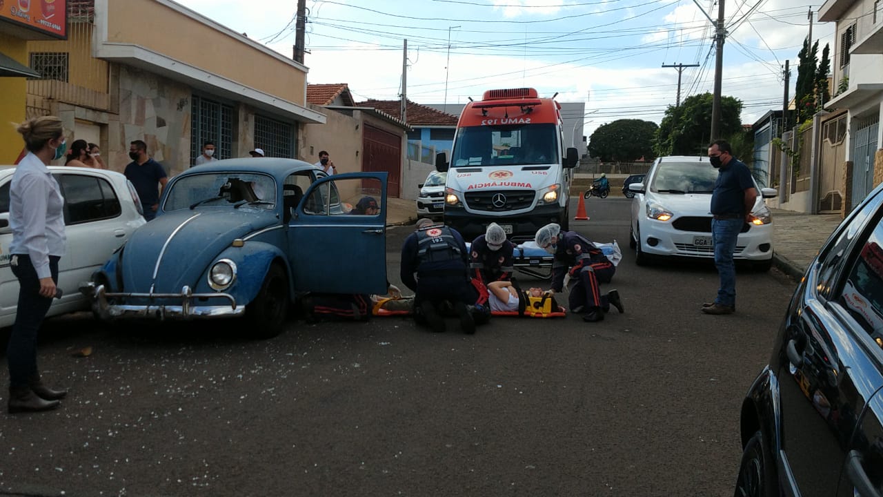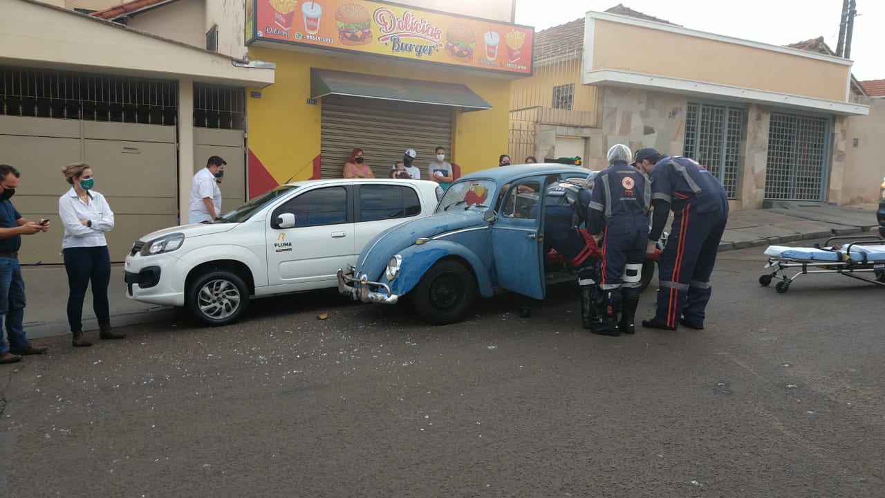 Segundo informações, a mulher foi socorrida pelo SAMU após colidir seu Fusca contra um Uno que estava estacionado. A mesma sofreu ferimentos no rosto.