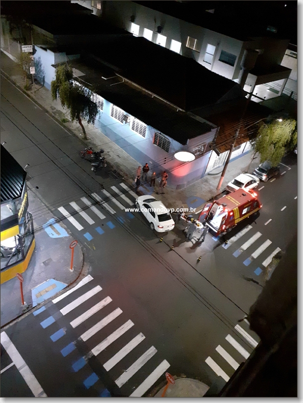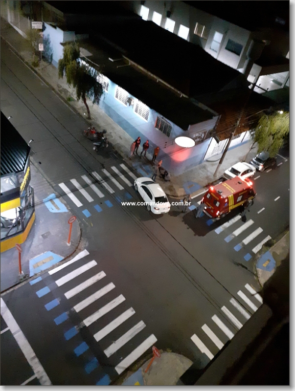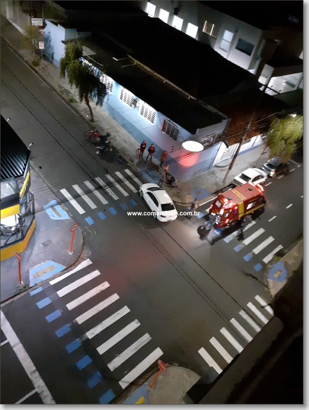 De acordo com informações, a Honda Biz conduzida por uma jovem de 28 anos, estaria pela Rua Major José Inácio, teria avançado o sinal de parada obrigatória e colidido com o veículo Voyage da cor branca, conduzido por um homem de 31 anos. A motociclista ficou ferida. Um policial militar que passava pelo local, parou e prestou os primeiros socorros. O Corpo de Bombeiros foi acionado e socorreu a jovem para a Santa Casa. Uma viatura da PM esteve presente e tomou as medidas cabíveis.