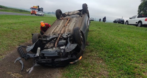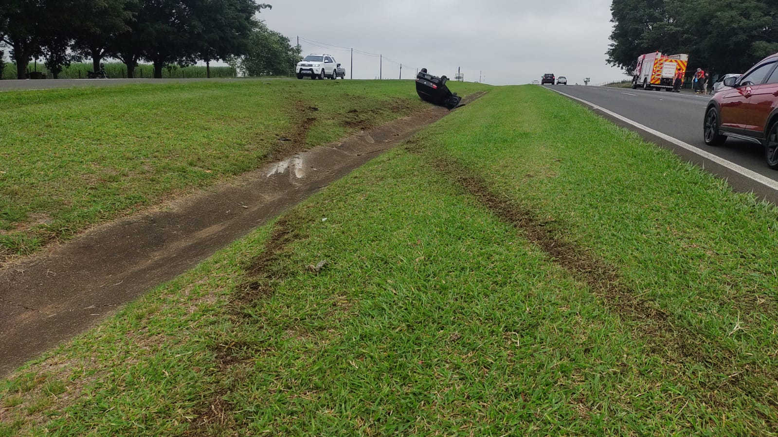 Uma mulher de 26 anos ficou levemente ferida em um capotamento ocorrido nesta manhã de segunda-feira, 12 de dezembro de 2022, no km 246 da Rodovia Washington Luís, Ibaté-SP.