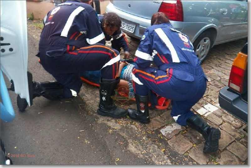 Uma mulher de 64 anos foi atropelada por uma moto e fraturou a perna no inicio da noite desta terça-feira, 20-12-2016, na rua Dona Alexandrina, Centro de São Carlos-SP.