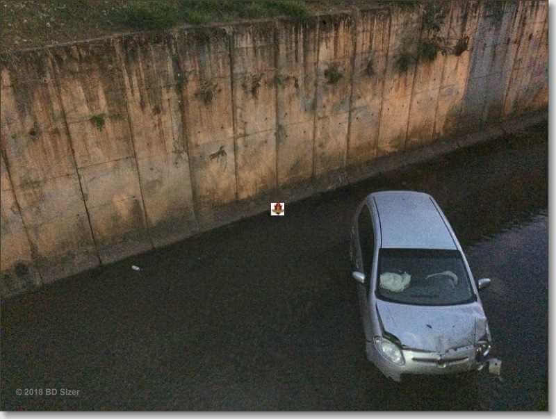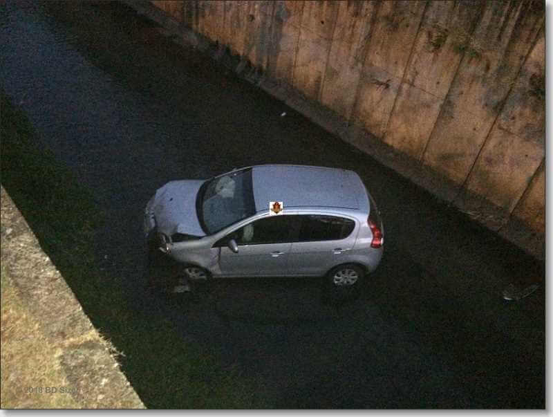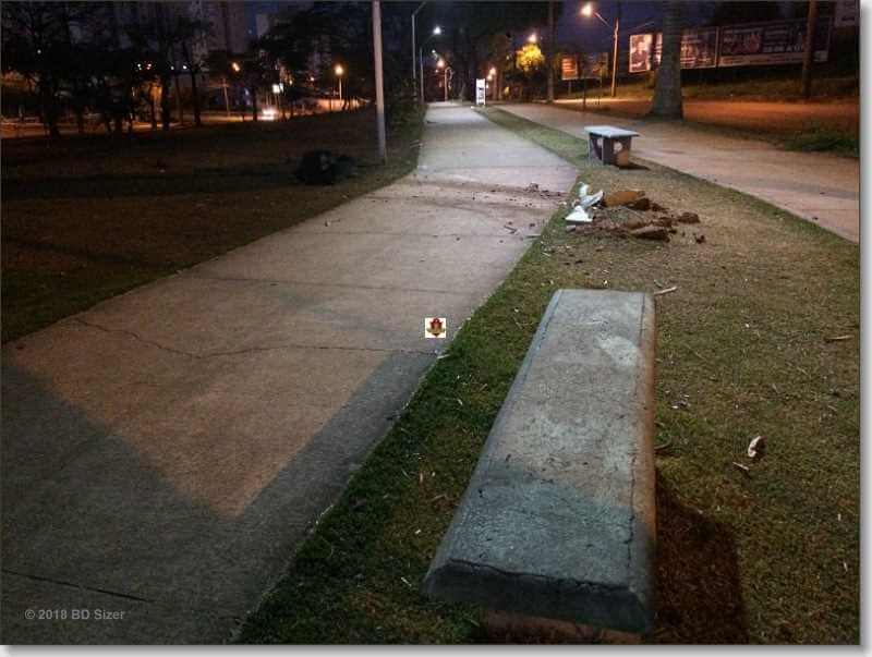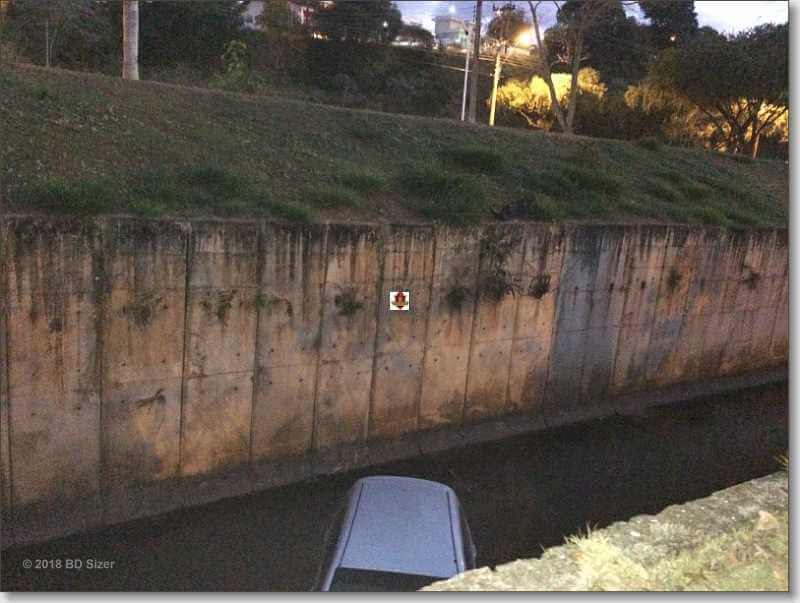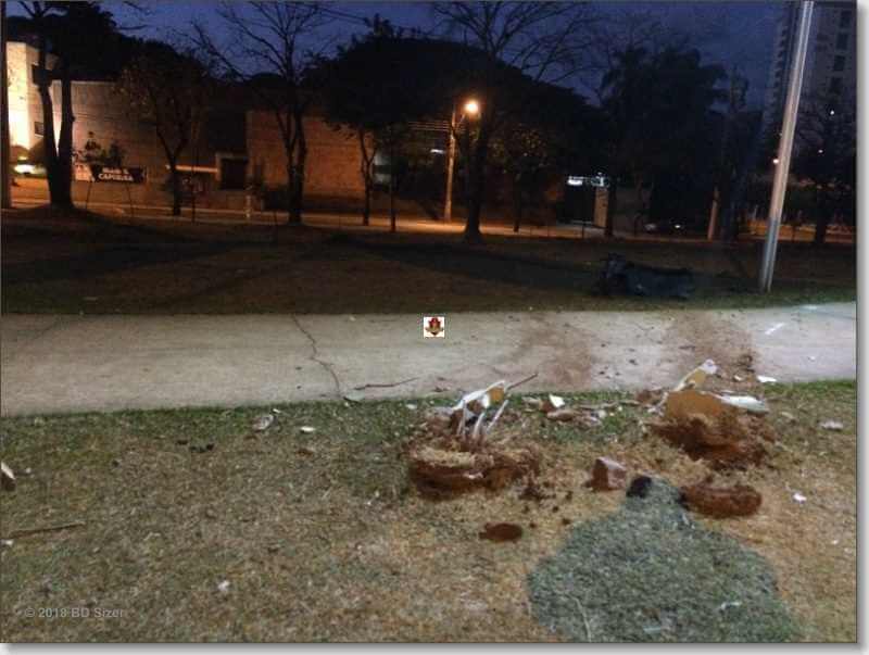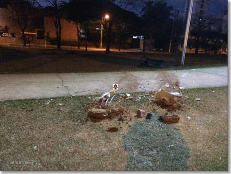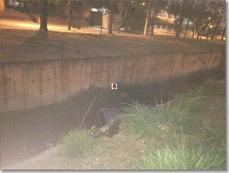 Durante a madrugada testa segunda-feira, 9 de julho de 2018, uma mulher de 40 anos, perdeu o controle de seu veículo Fiat Palio, arrancou um banco de concreto e caiu em um córrego na avenida Comendador Alfredo Maffei, região do SESC, São Carlos-SP.