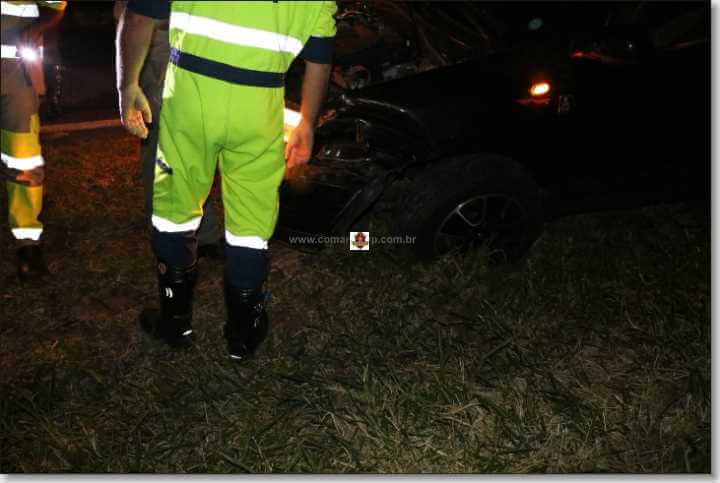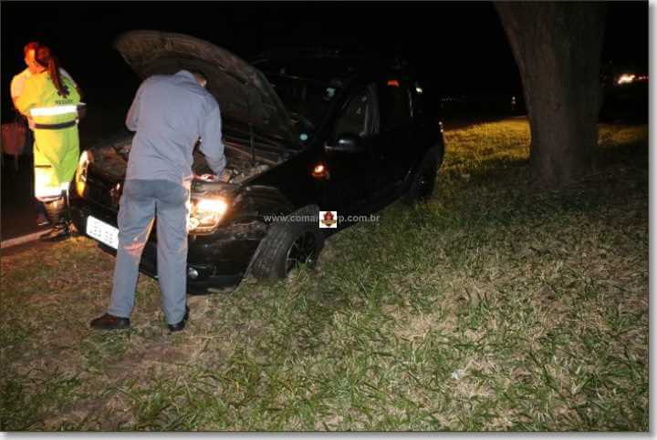 Uma mulher de 37 anos ficou levemente ferida ao perder o controle da direção e colidir seu carro em uma árvore nesta noite de sexta-feira, 08-02-2019, na alça de acesso da SP-310, com a SP- 215, São Carlos-SP.