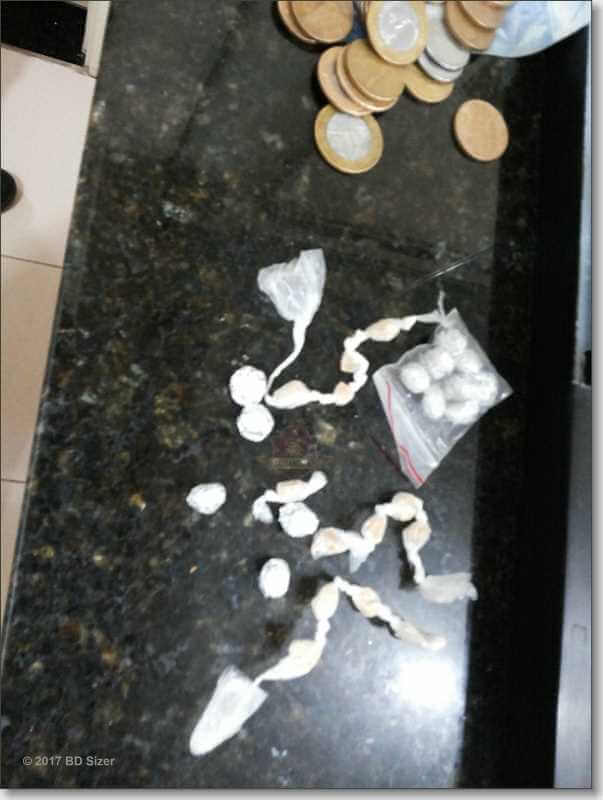 Com as mesmas foram localizados R$ 107,00 reais em notas diversas, R$ 13,00 em moedas diversas e 27 pedras de crack embaladas para consumo. Carina.M, 20 anos e J. C. C, de 19 anos foram encaminhadas ao Plantão Policial, Carina assumiu ser a dona das drogas e foi recolhida à Cadeia Feminina de Ribeirão Bonito. A outra foi liberada.