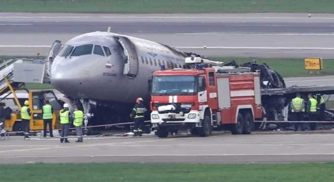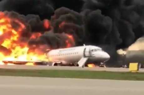 Um avião de passageiros pegou fogo neste domingo (5) ao efetuar uma aterrissagem de emergência no aeroporto Sheremetievo em Moscou, na Rússia.
