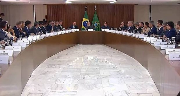 O presidente Luiz Inácio Lula da Silva (PT) se reuniu, nesta segunda-feira (9), com representantes dos 26 estados e a governadora em exercício do Distrito Federal. O encontro ocorreu um dia depois que vândalos depredaram os prédios dos Três Poderes, em Brasília. No encontro, o chefe do Executivo federal afirmou que o governo vai investigar os financiadores das invasões e que a Polícia Militar do Distrito Federal foi conivente com os extremistas.