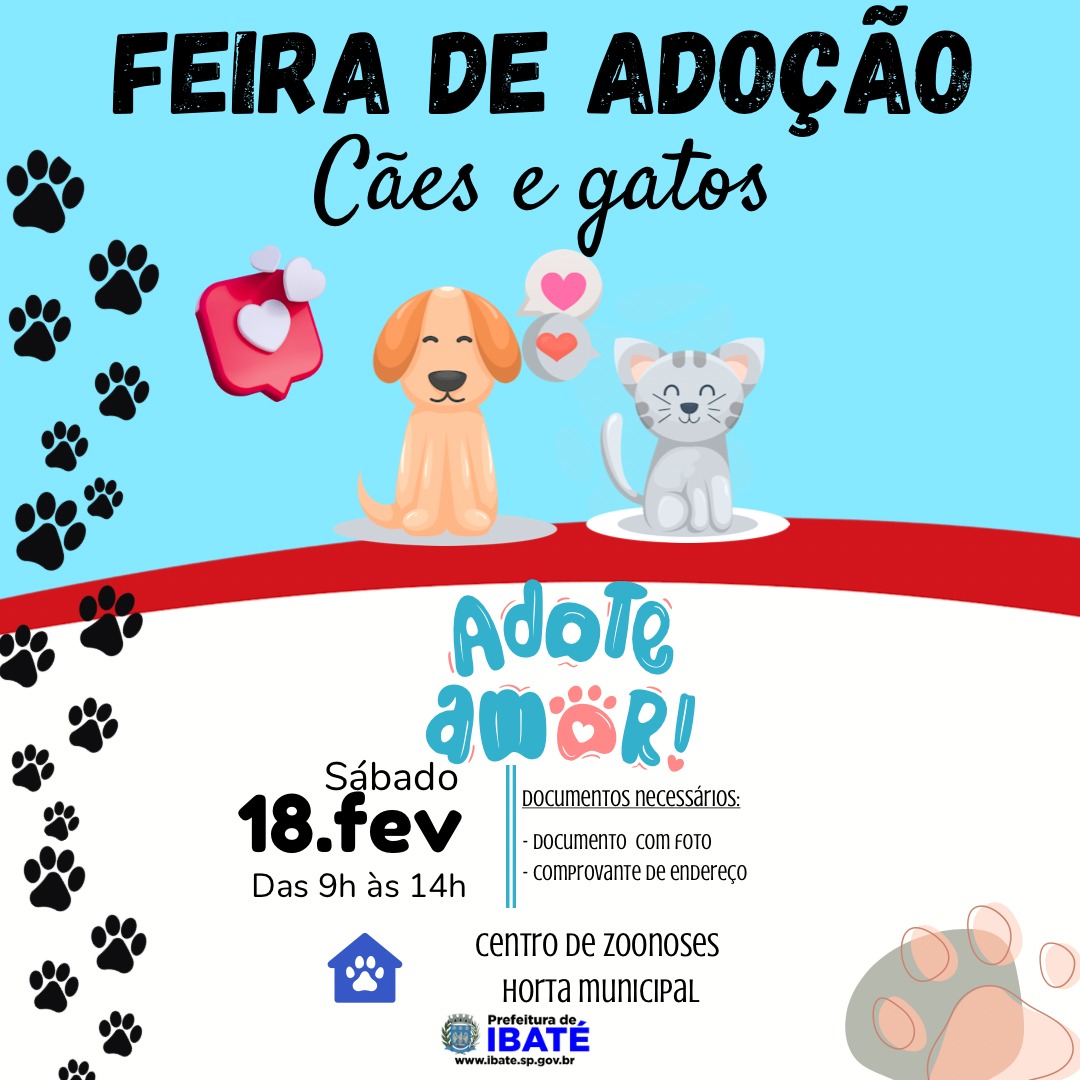 A Prefeitura de Ibaté, por meio do Centro de Controle de Zoonoses (CCZ) “João Trevizan”, realiza, neste sábado (18), das 9h às 14h, a feira de adoção responsável de cães e gatos adultos e filhotes, na “Horta Municipal”, localizada na rua José Donatoni, 656, Jardim Mariana, onde as pessoas poderão conhecer os animais e adotá-los.