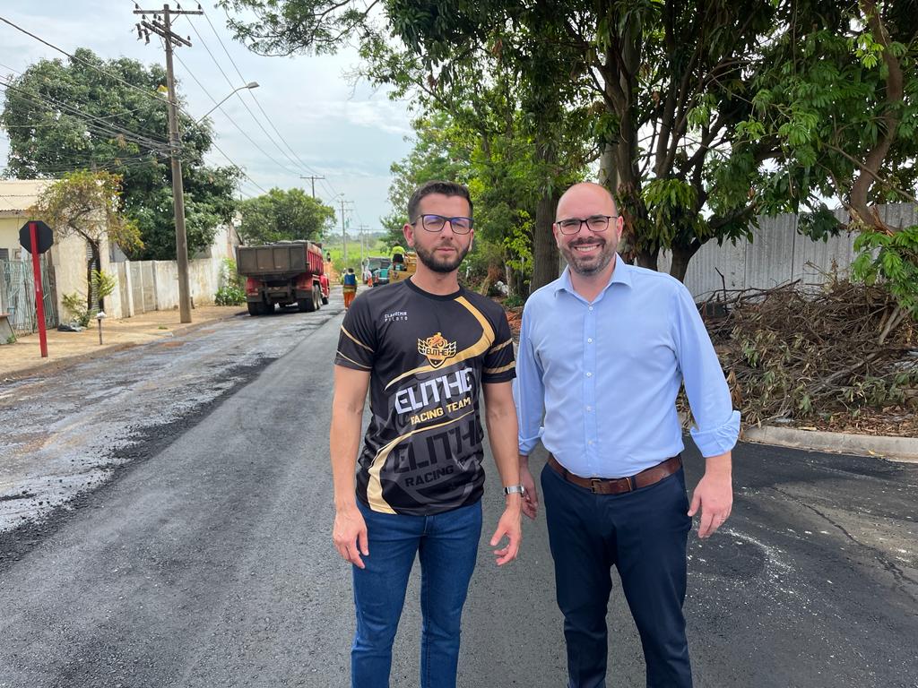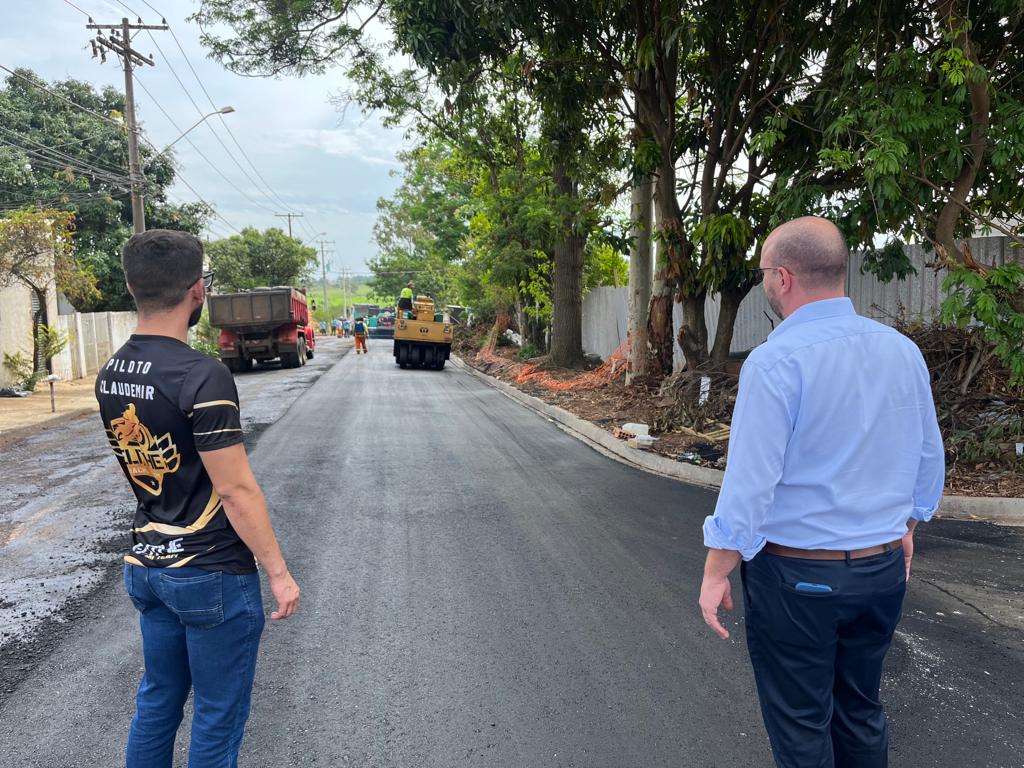O secretário de Governo, Netto Donato e o vereador Elton Carvalho, acompanharam no início da tarde desta terça-feira (17/10), o serviço de recapeamento que está sendo realizado pela Prefeitura de São Carlos nas vias do bairro Jockey Clube.