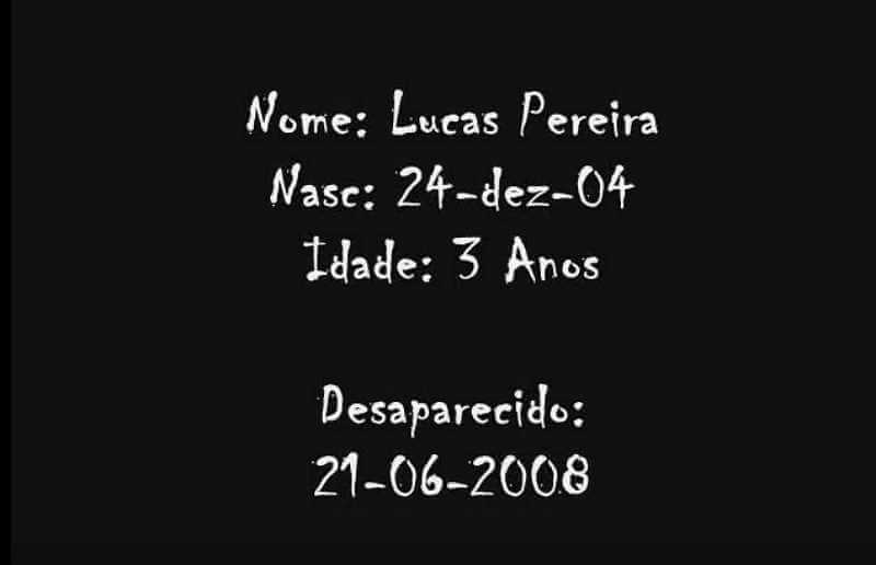 Após 9 anos do desaparecimento de Lucas Pereira, o qual foi visto pela última vez no dia 21-06-2008, na época com três anos e meio de idade, as autoridades ainda não têm uma resposta concreta para a família do pequeno garoto. Lucas desapareceu da casa da avó no bairro Jd. Beatriz, São Carlos-SP.