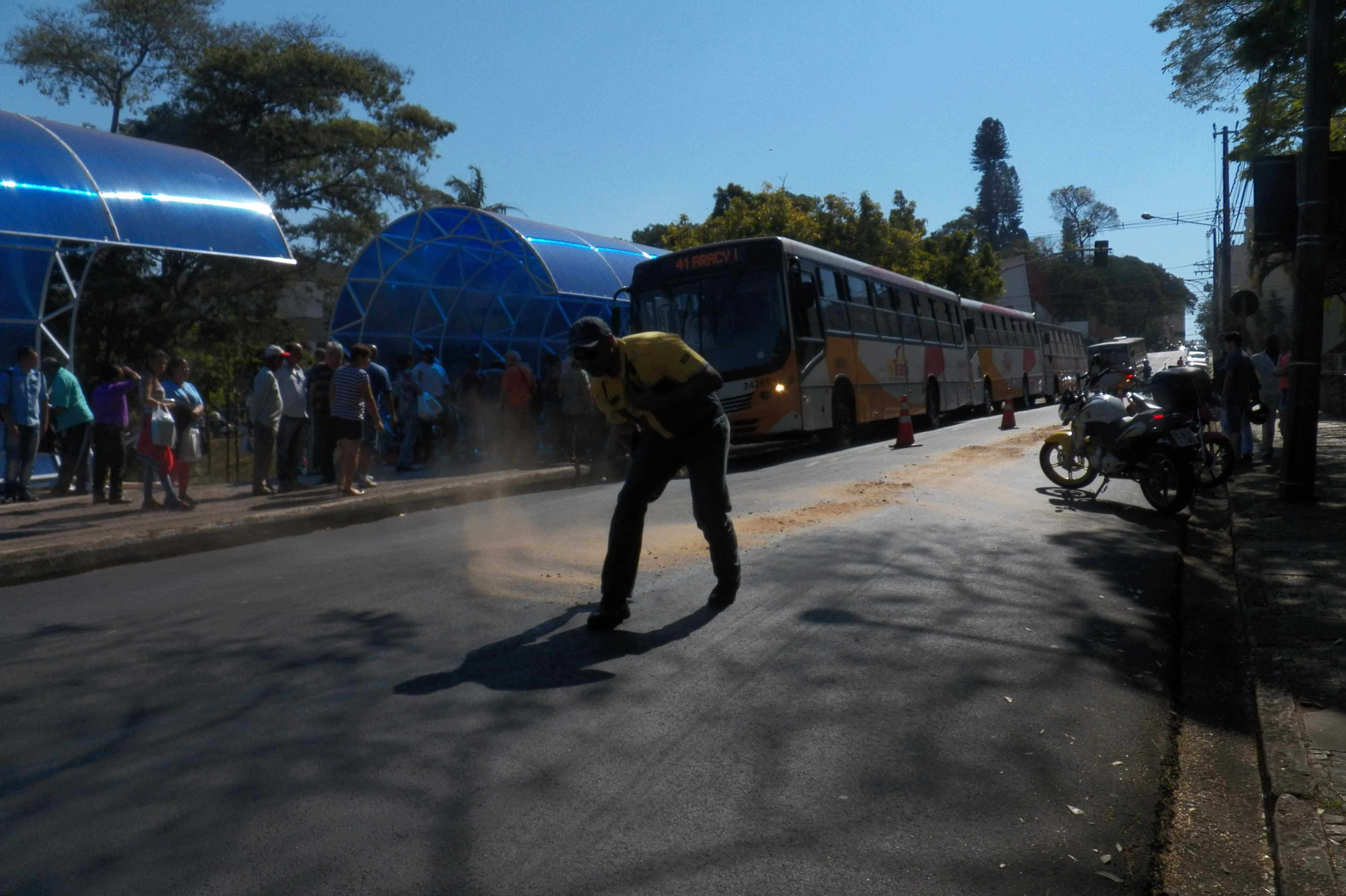 Óleo  derramado na rua Dona  Alexandrina causou um acidente de moto no inicio da tarde deste sábado,30-07, no Centro de São Carlos-SP.