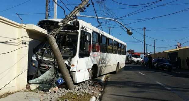 Ônibus da Suzantur arrebenta poste no Santa Felícia e cinco pessoas ficam feridas