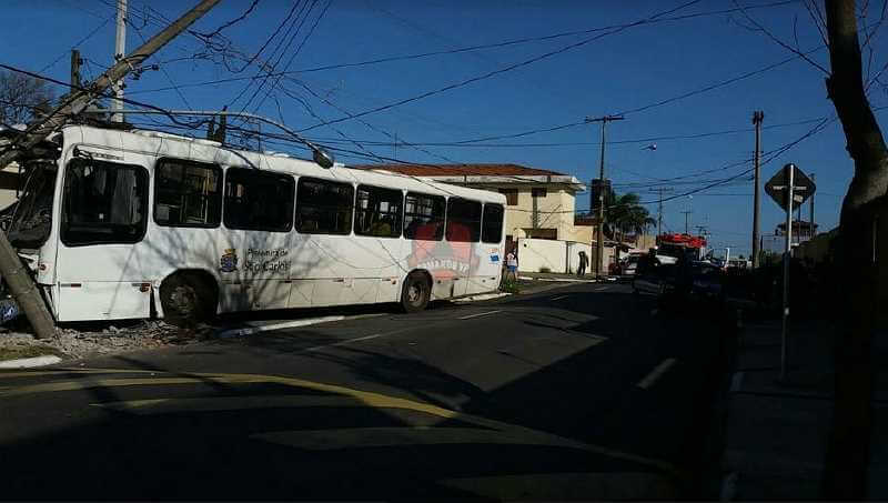 Cinco pessoas ficaram feridas por volta das 8:00 desta terça-feira, 22 de agosto de 2017, momento que um coletivo da empresa Suzantur atingir um poste e também o portão de uma residência situados na rua Miguel João, bairro Santa Felícia, São Carlos-SP.