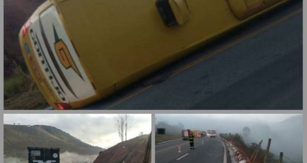 Um ônibus de passageiros capotou, na madrugada deste domingo (16-05-2021), na BR-381, próximo ao município de Nova Era, a 141 km de Belo Horizonte, matando uma pessoa e deixando dez vítimas feridas.
