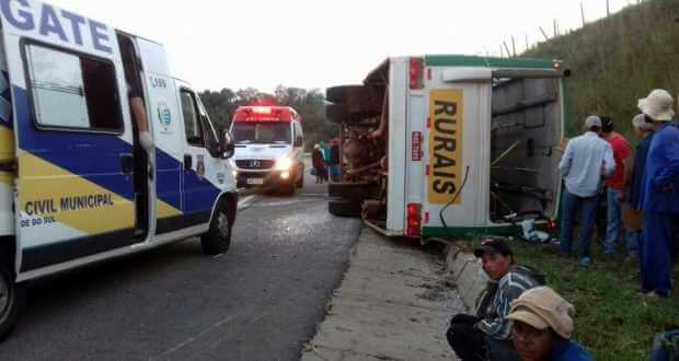 O ônibus que transportava trabalhadores rurais tombou na rodovia João Batista de Souza Andrade (SP-215), no fim da tarde. O acidente deixou 15 feridos. Um dos feridos teve parte da mão amputada. A Polícia Cientifica esteve no local para apurar as causas do acidente.