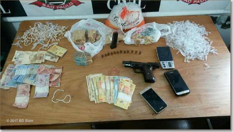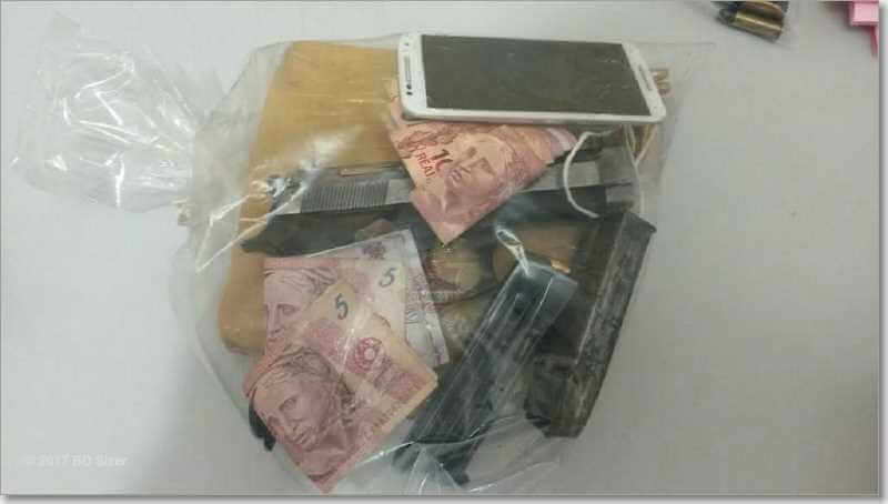 Foram apreendidos também um cheque do Banco Itaú no valor de R$ 120,00, uma balança de precisão, aproximadamente 2.000 mil pinos vazios, R$ 2.059( que segundo a PC, pertence a mulher presa) e R$ 6.796,00 (valor este pertencente a Cleiton) e uma pistola 7.65, marca Taurus, 12 cartuchos íntegros capacidade para 13 tiros, bom estado de conservação, pessoa relacionada Cleiton.